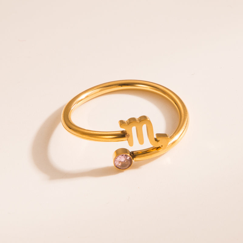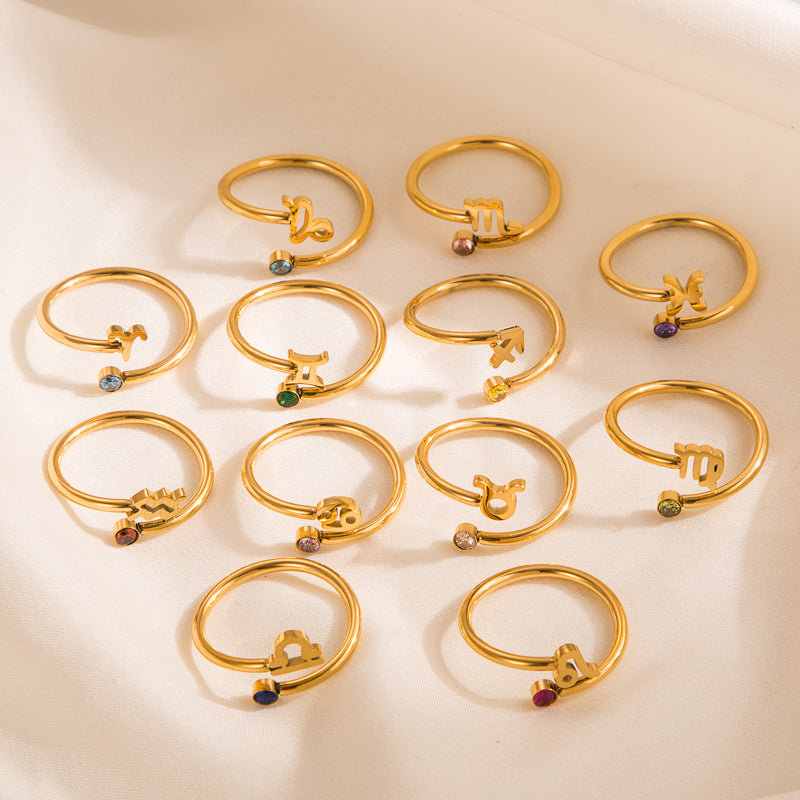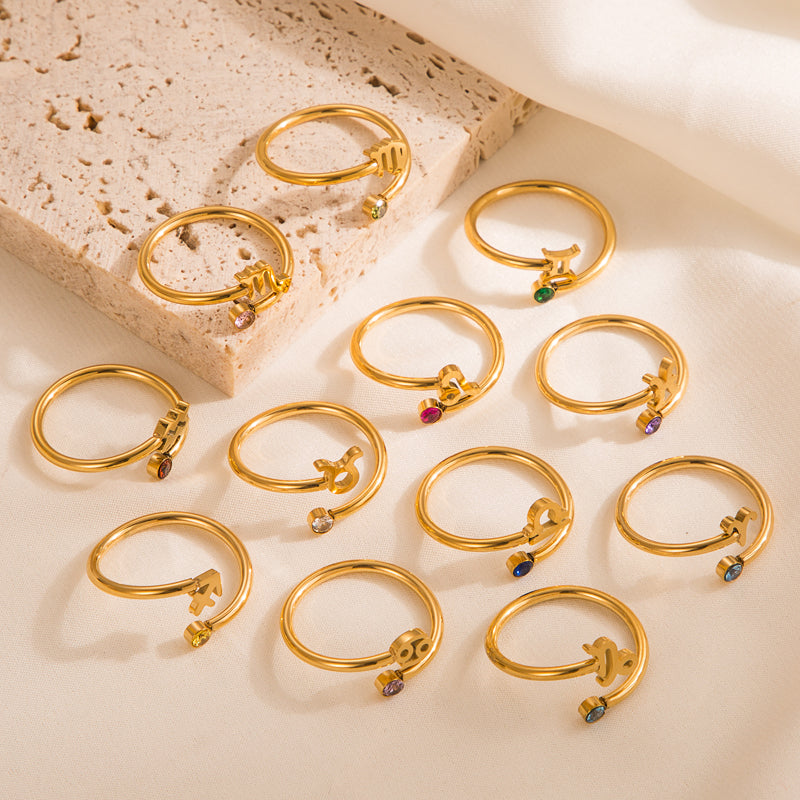 Simple Constellation Symbol Gold Plated Zircon Open Ring Set