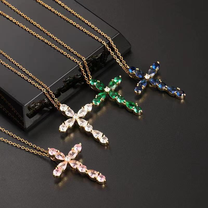 Simple Style Zircon Cross Pendant Necklace in 18K Gold and Silver Plating