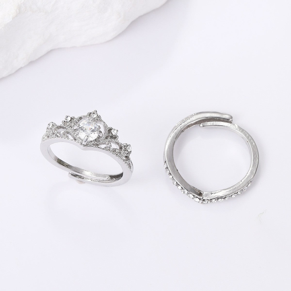 Simple Crown Crystal Adjustable Women's Ring Set