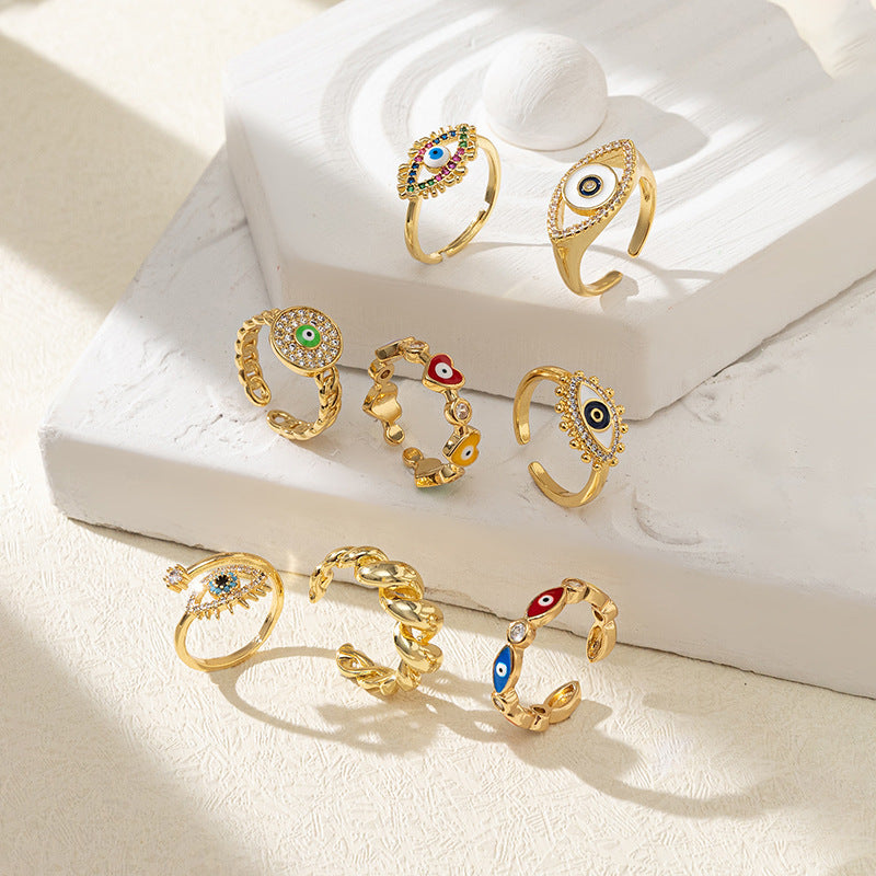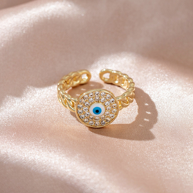 Minimalist Evil Eye Gold Plated Adjustable Ring