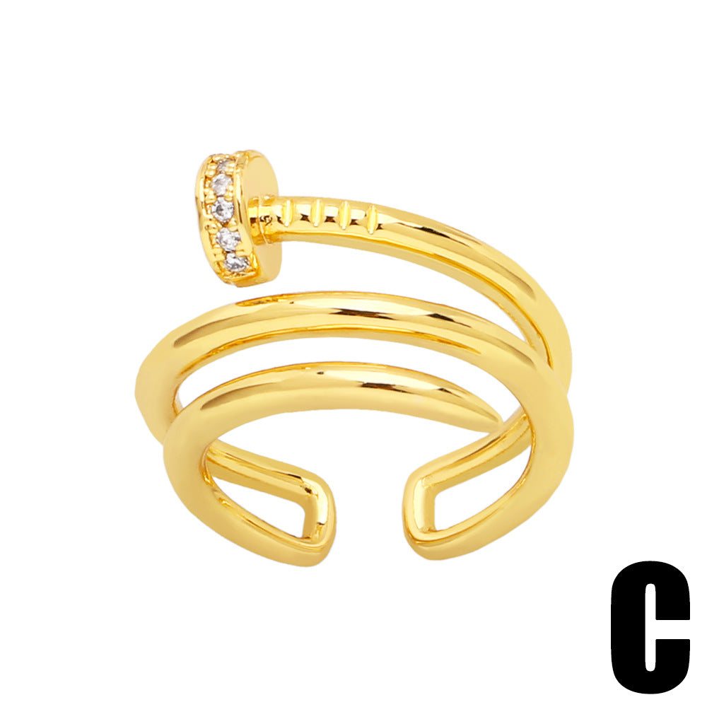 Simple Style Multi-Layer Nail and Dog Design Gold Plated Zircon Open Ring