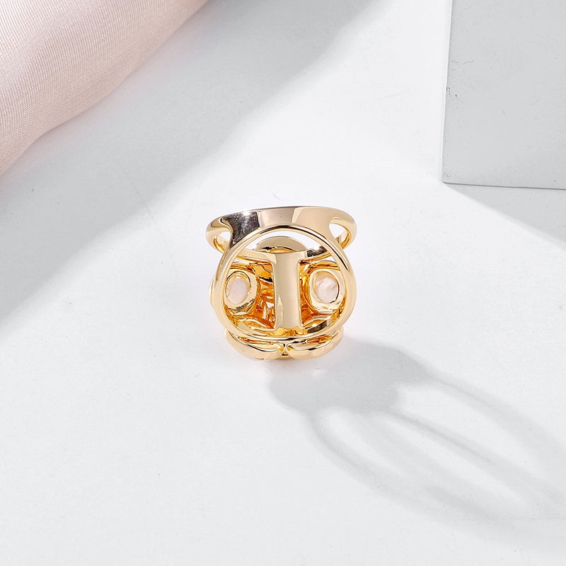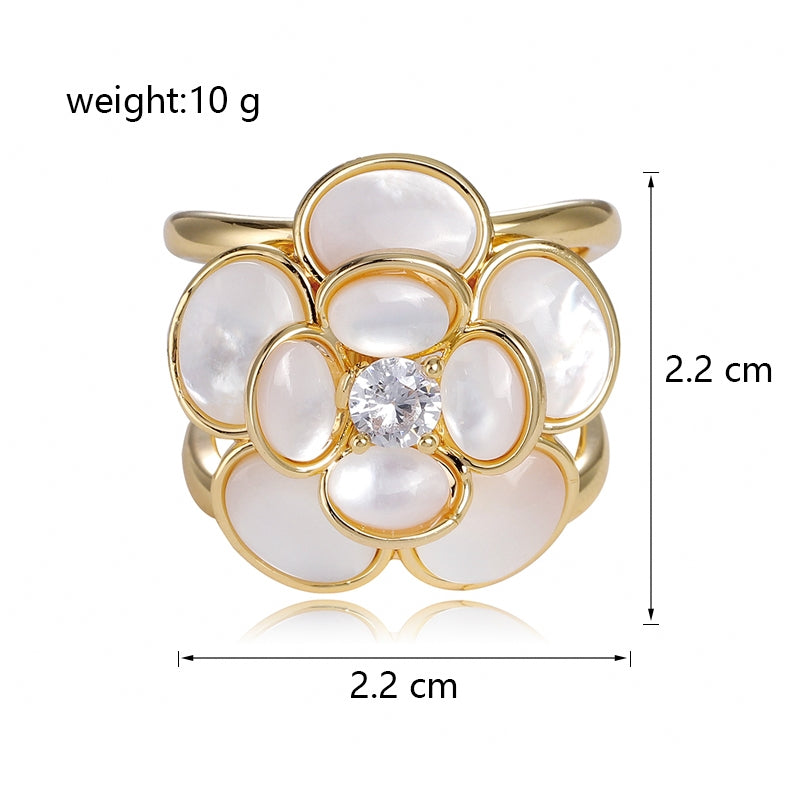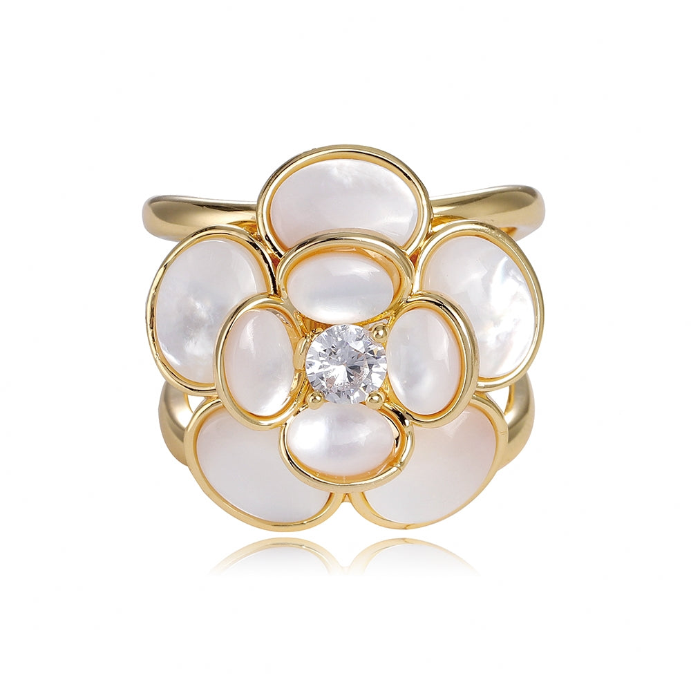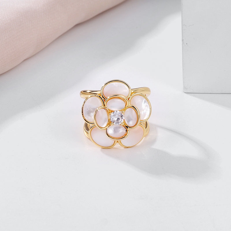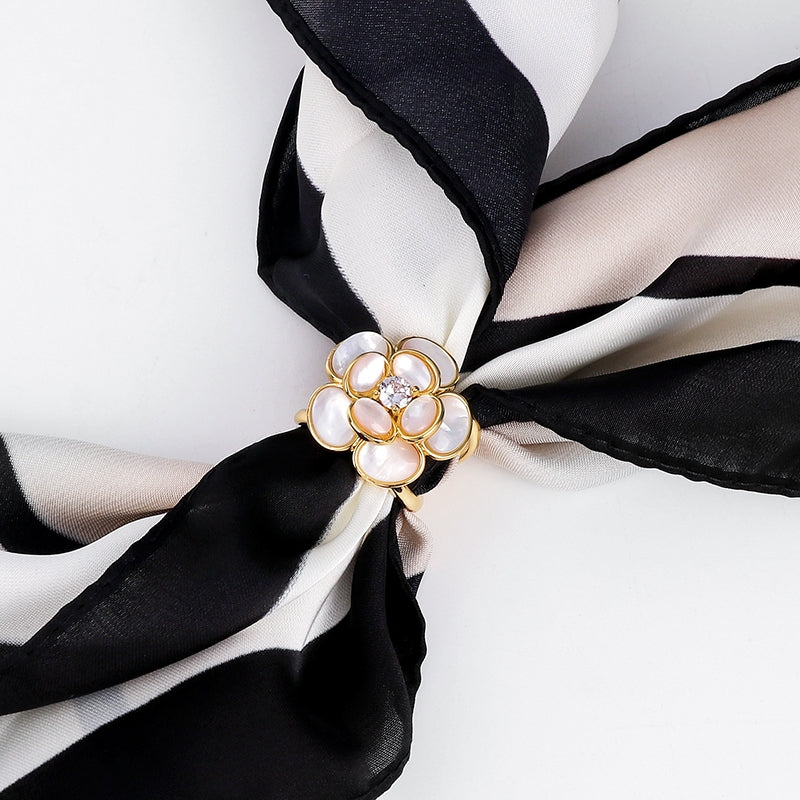 Simple Floral Stainless Steel Rhinestone Inlay Shell Scarf Ring for Women