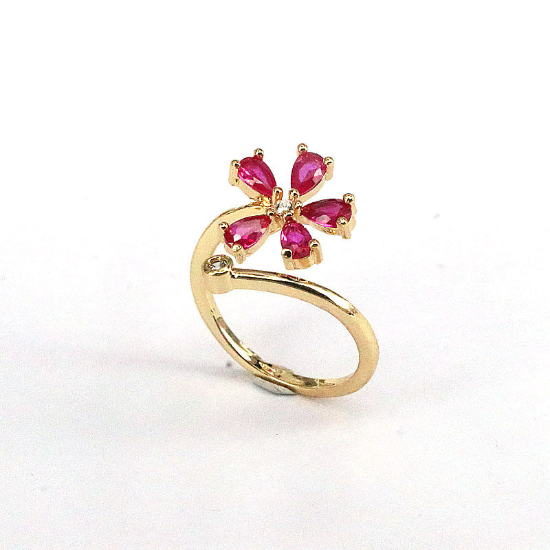 Simple Flower Zircon Adjustable Gold Plated Copper Ring