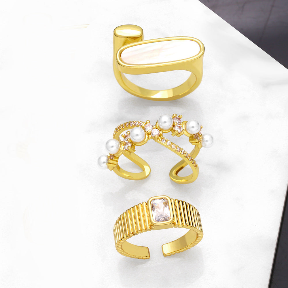 Minimalist Geometric Gold Plated Pearl Shell Zircon Ring