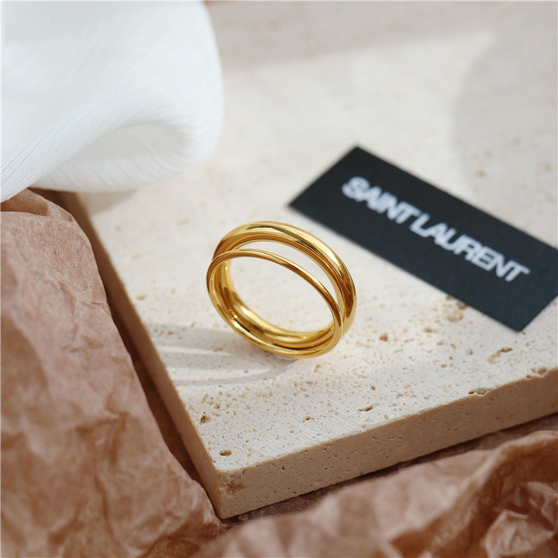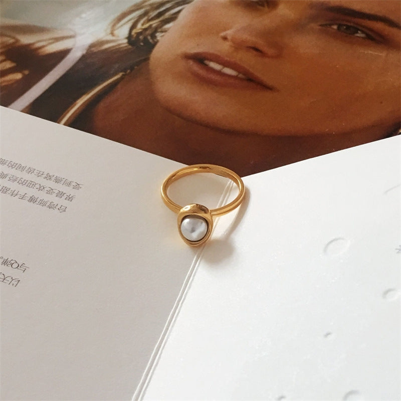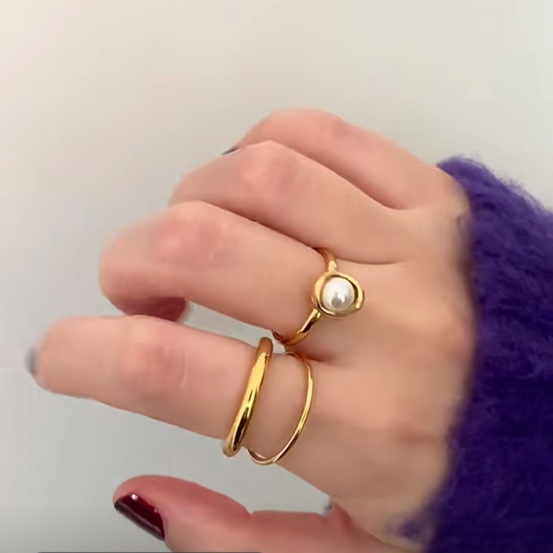 Minimalist Geometric Double Layer Stainless Steel Ring with Artificial Pearls