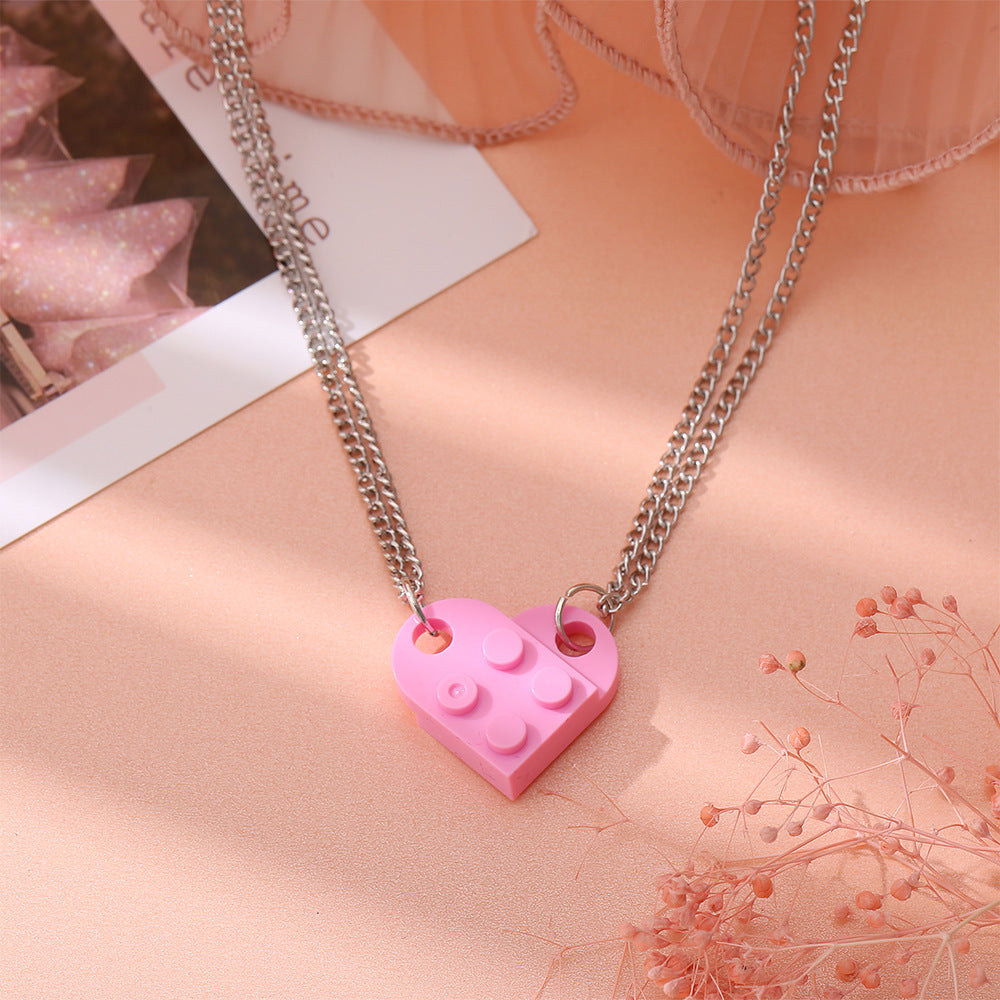Simple Heart Shape Alloy Pendant Necklace with Colorful Cross Chain