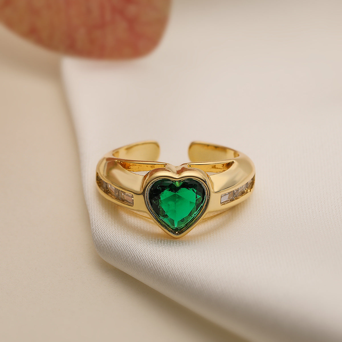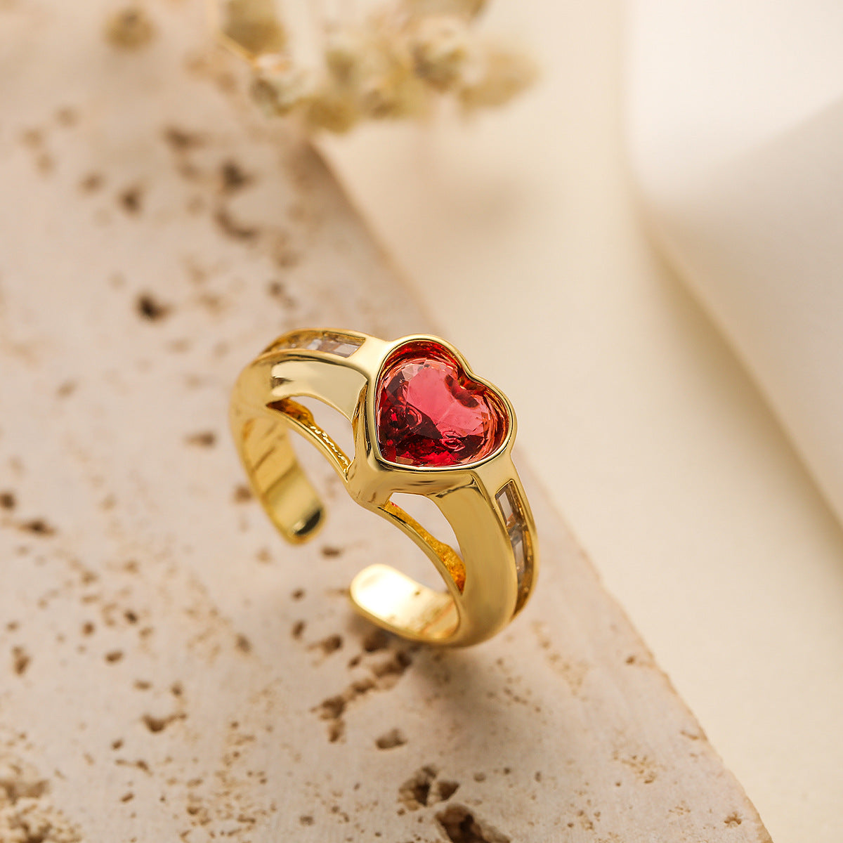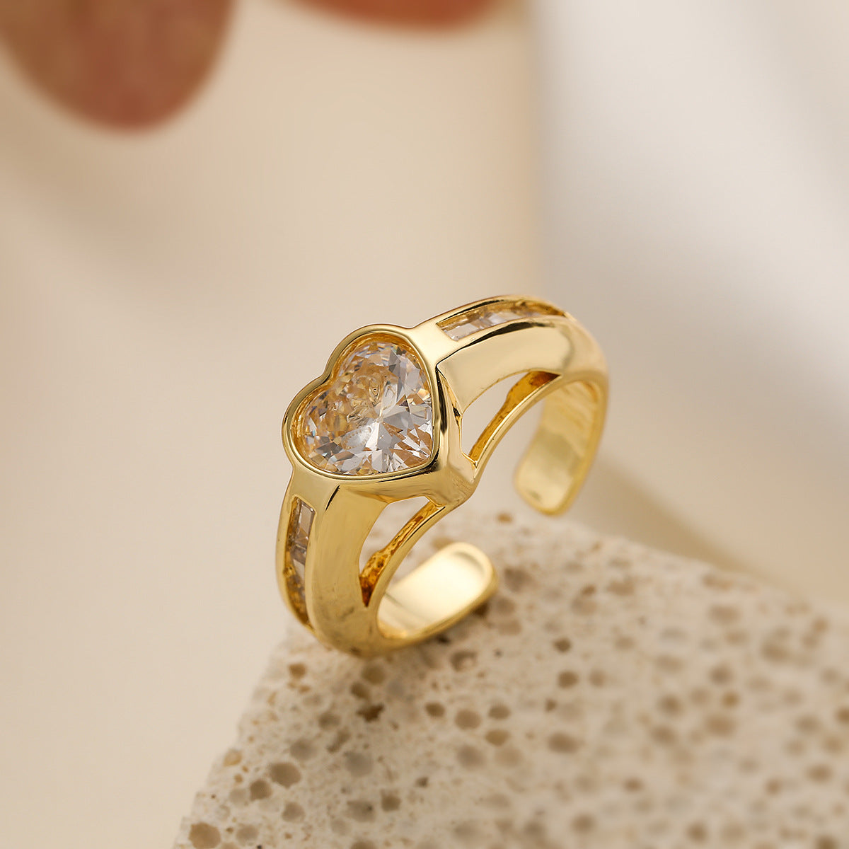 18K Gold Plated Heart Shape Zircon Open Ring for Women
