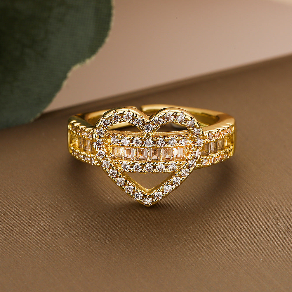 Simple Heart Shape Zircon 18K Gold Plated Adjustable Open Ring