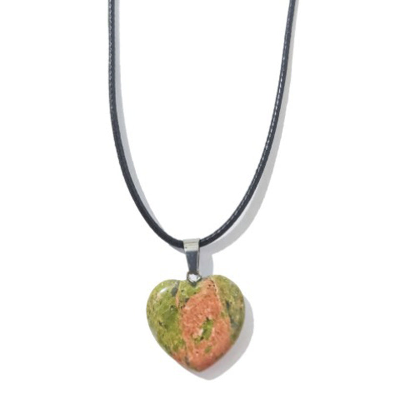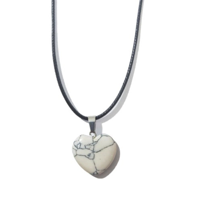 Simple Heart-Shaped Natural Stone Carved Pendant Necklace