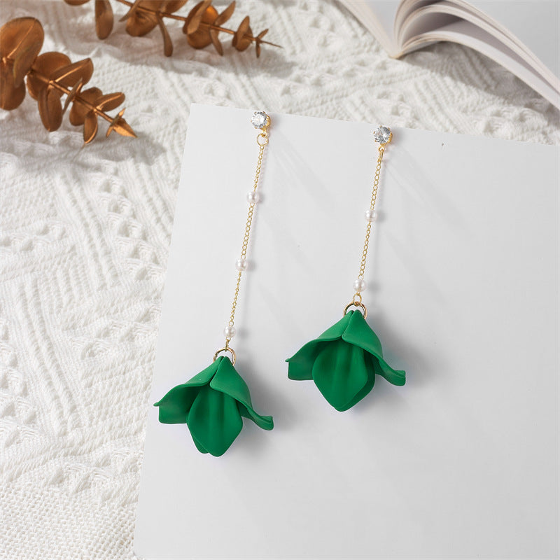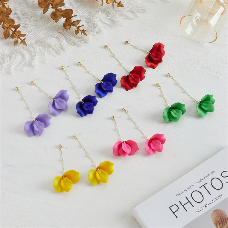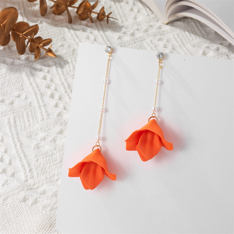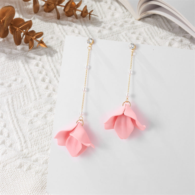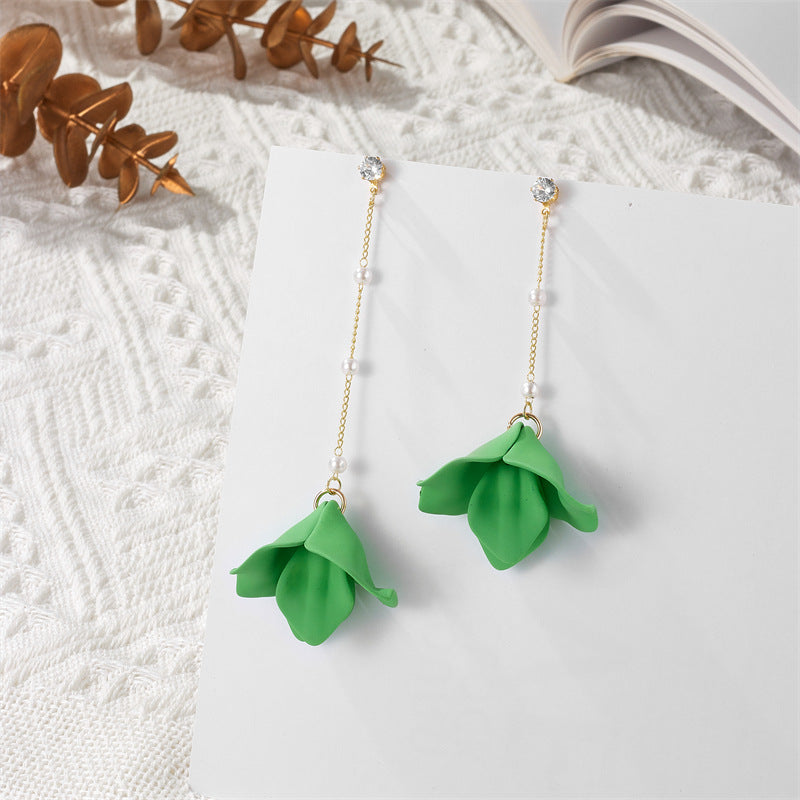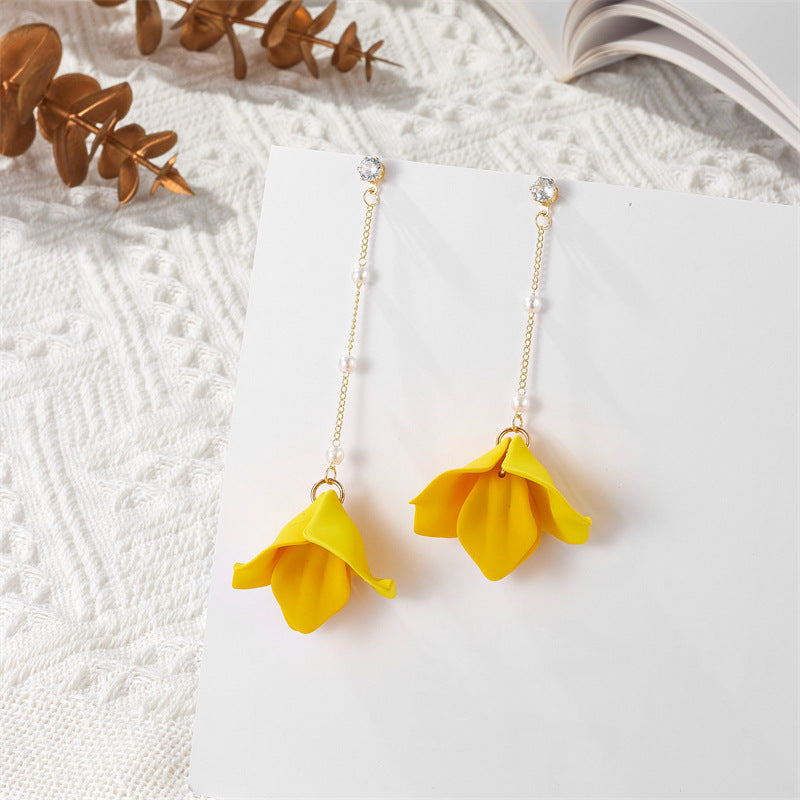 Simple Style Leaf Acrylic and Pearl Flower Drop Earrings for Women