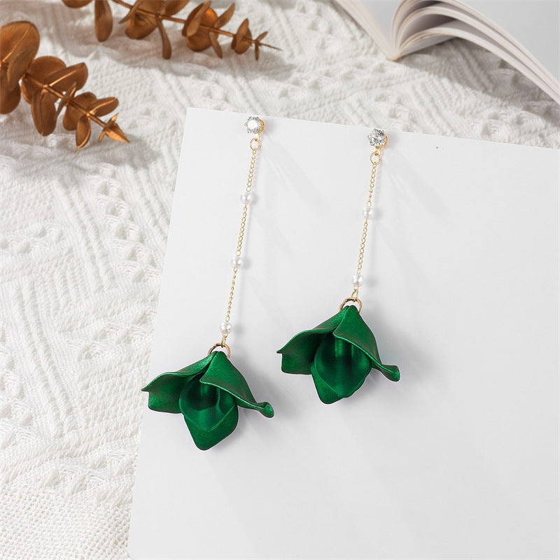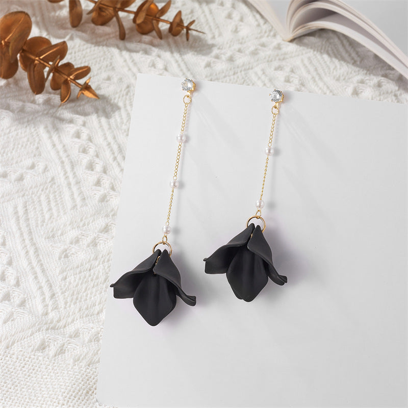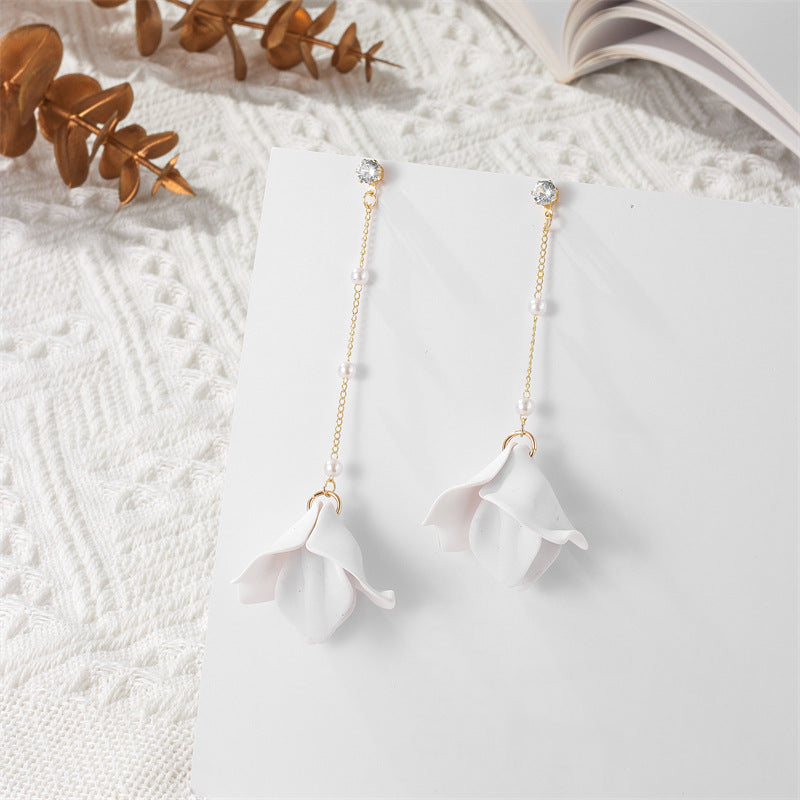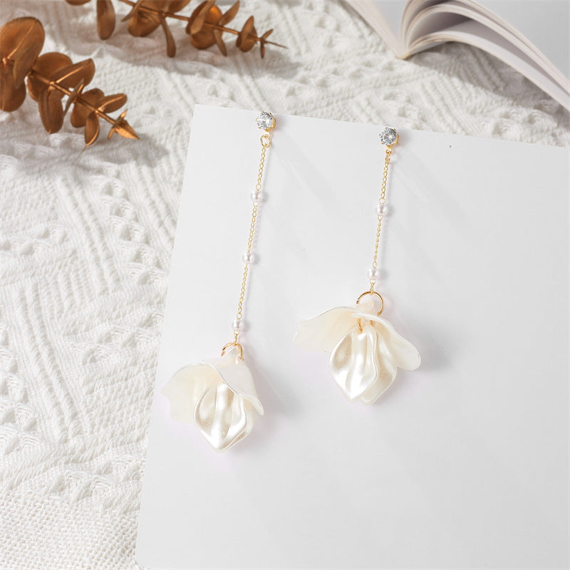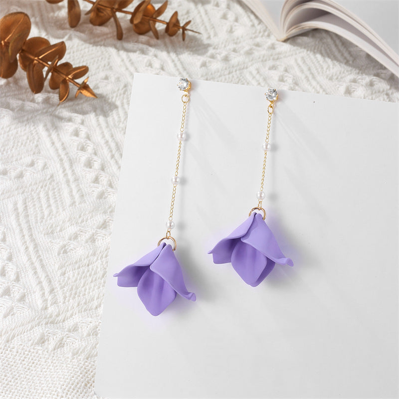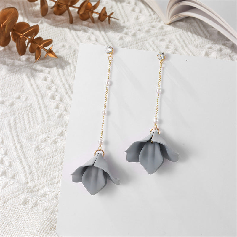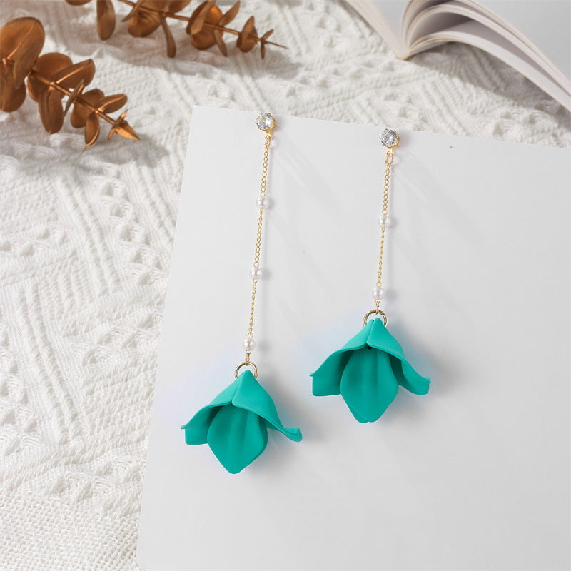 Simple Style Leaf Acrylic and Pearl Flower Drop Earrings for Women