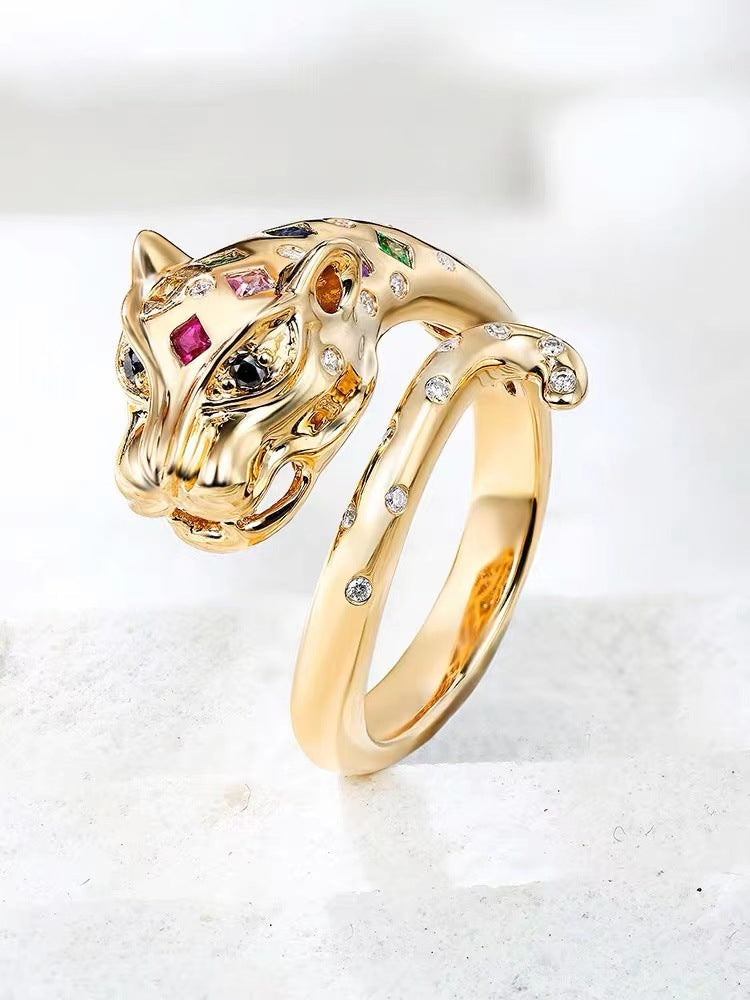 Simple Style Leopard Head Gemstone Inlay Gold Plated Open Ring