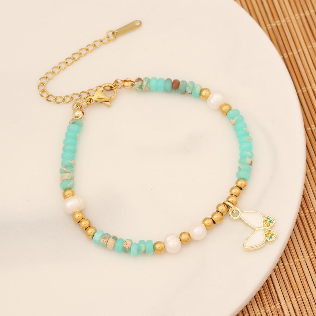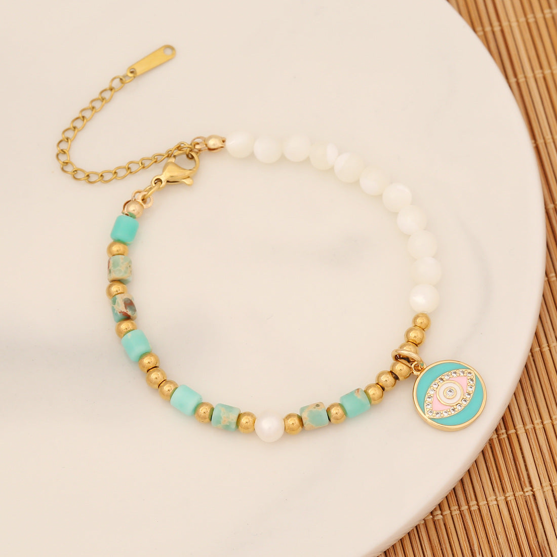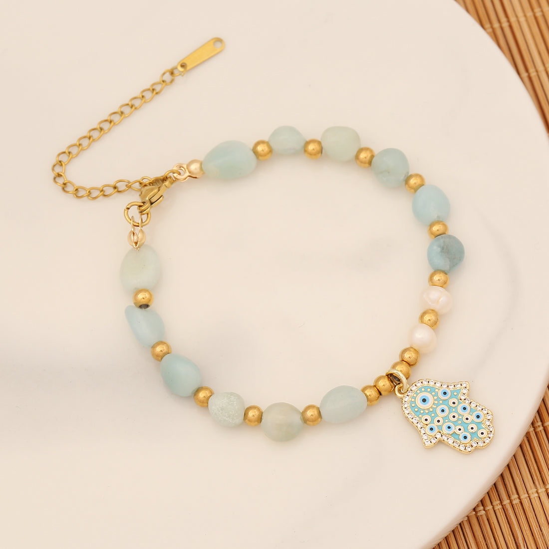 Simple Style Natural Stone Stainless Steel Butterfly Eye Palm Beaded Bracelet