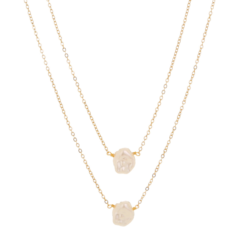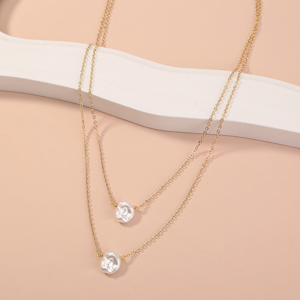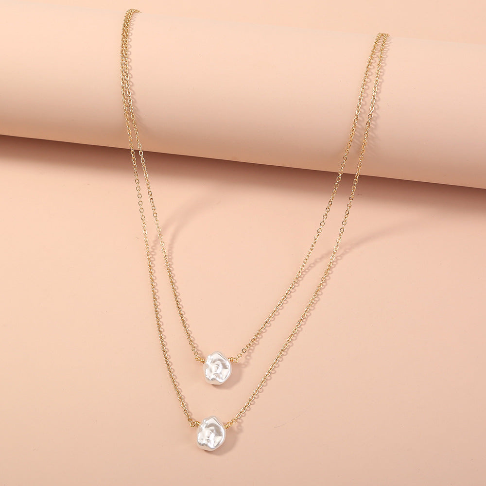 Simple Double Layer Baroque Imitation Pearl Choker Necklace