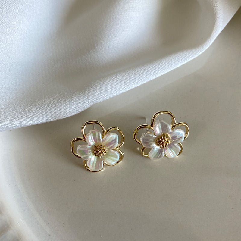 Simple Style Shell Flower Earrings with S925 Silver Needle
