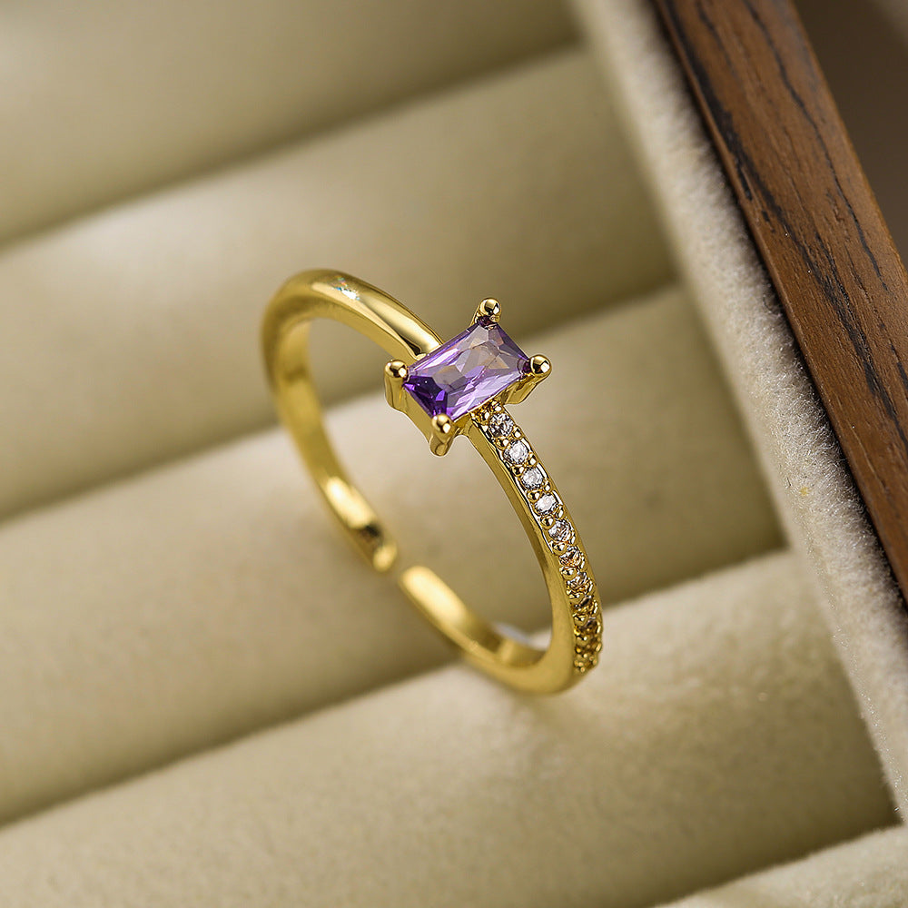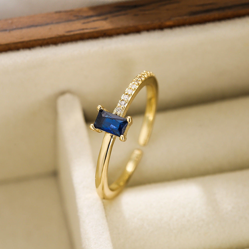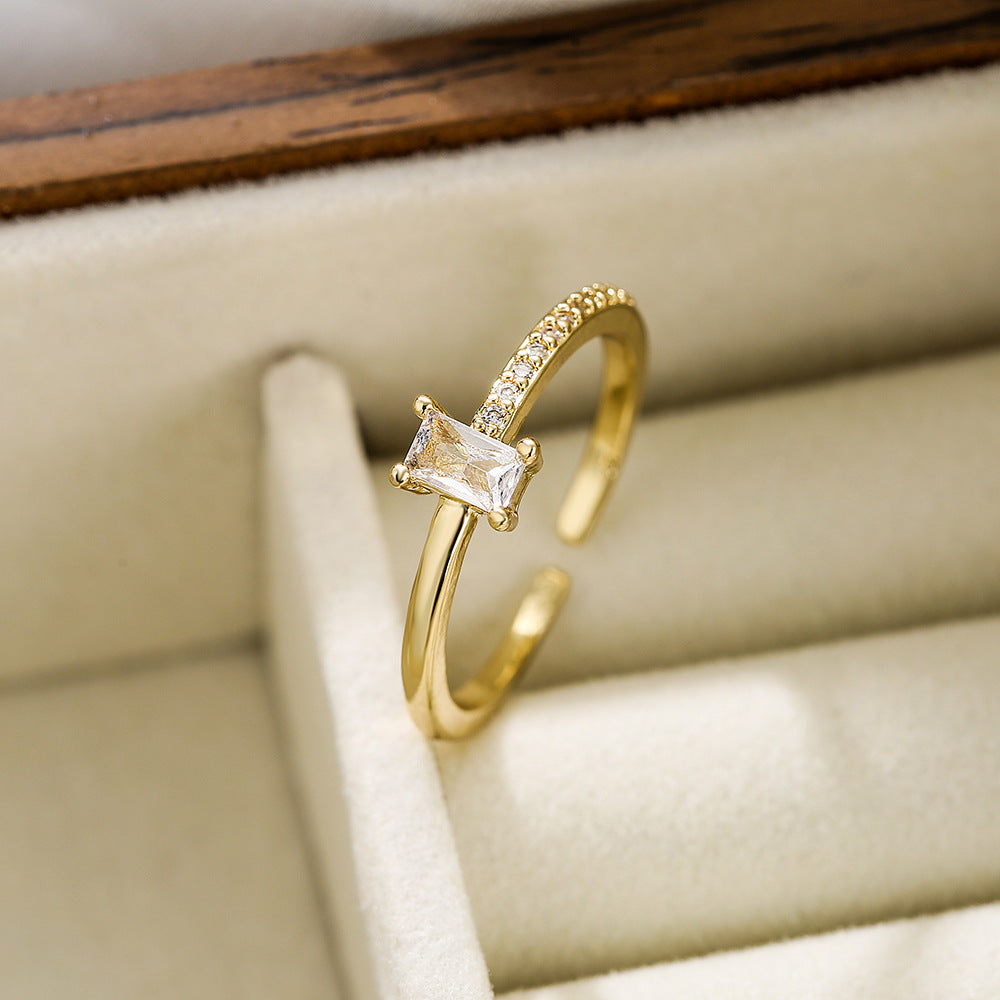 Simple Geometric Zircon 18K Gold Plated Open Ring