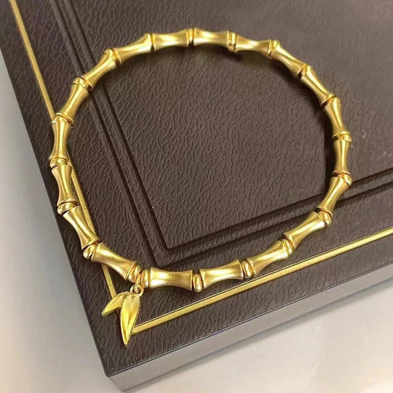 Simple Style Round Alloy Plated Metal Women's Bangle and Vintage Bamboo Design Necklace Bracelet Set for Women