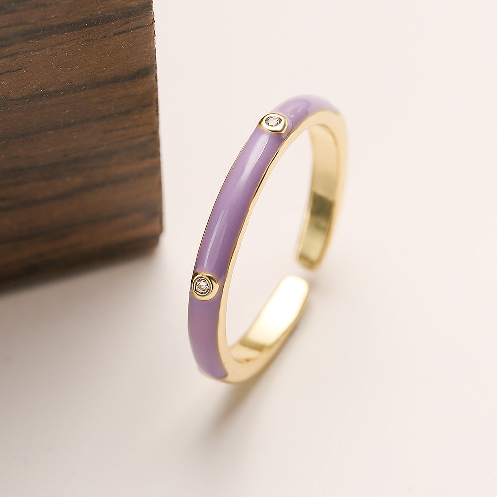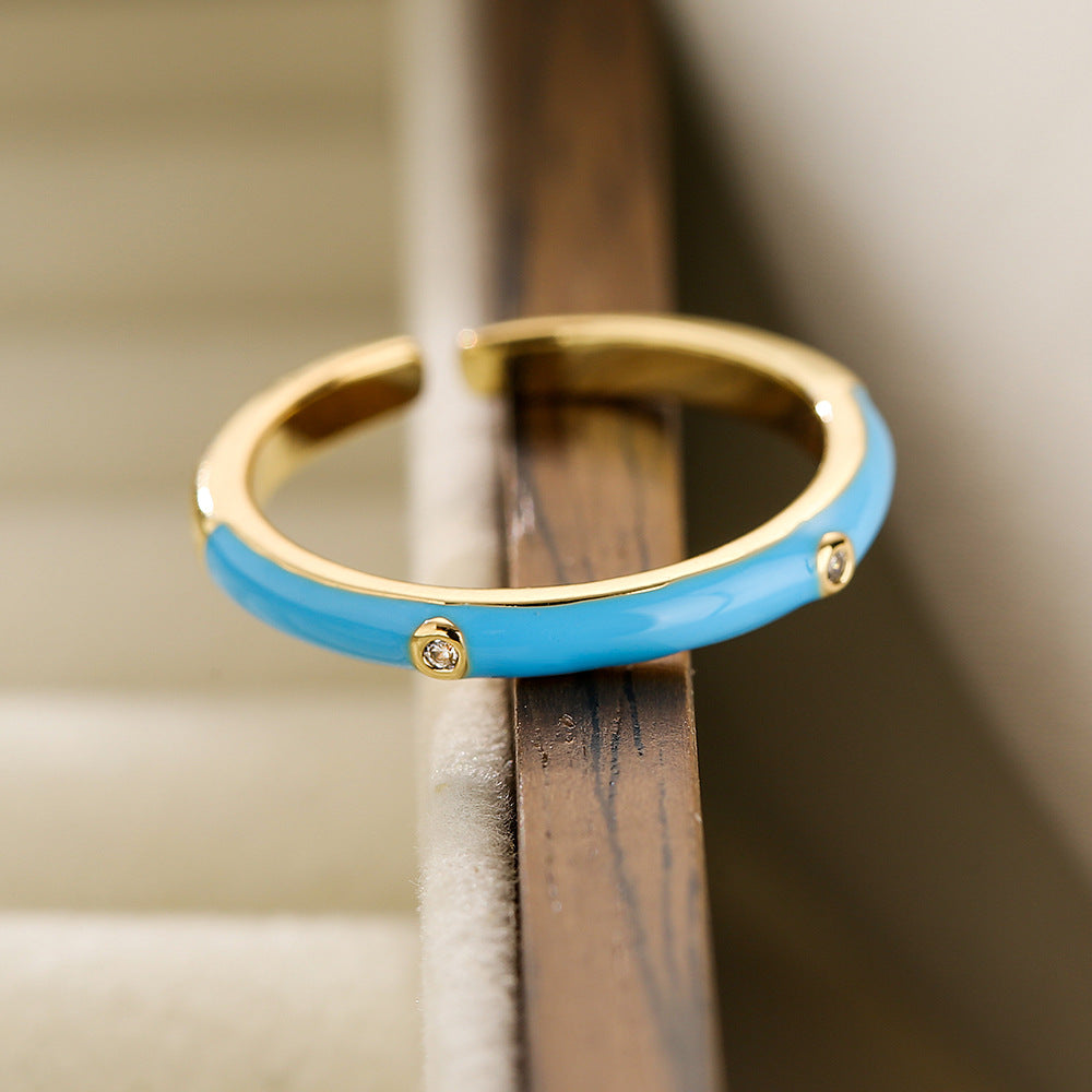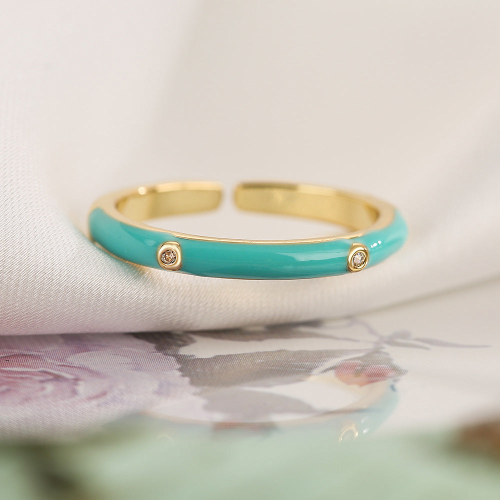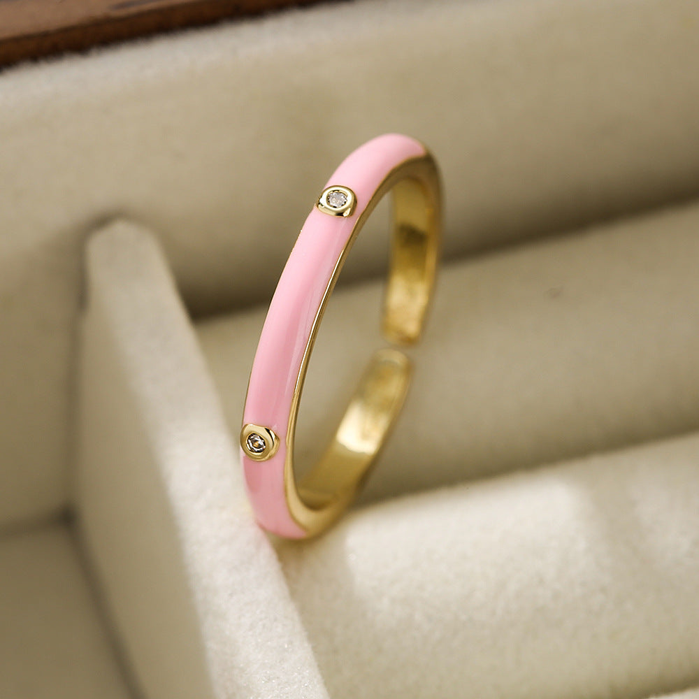 Simple Style 18K Gold Plated Zircon Enamel Open Ring