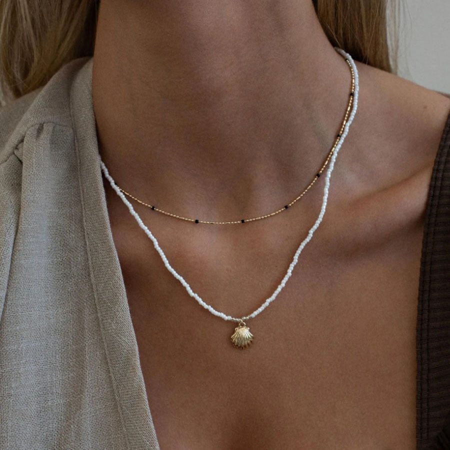 Simple Shell Seed Bead Titanium Steel Pendant Necklace