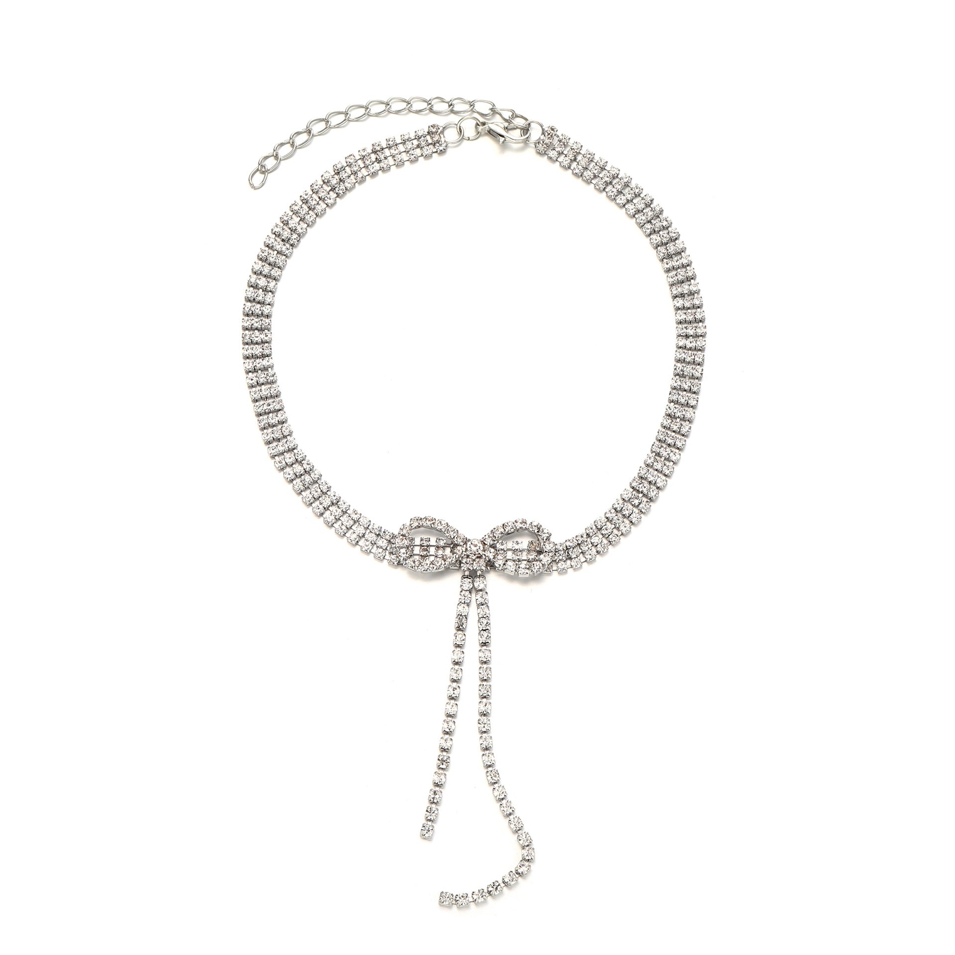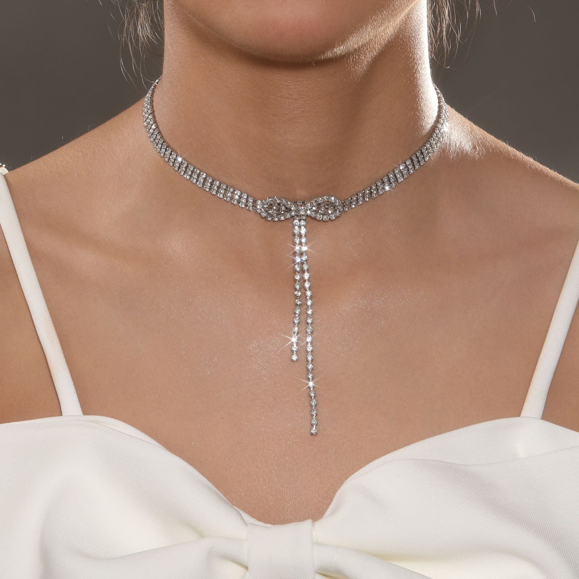 Elegant Rhinestone Bow Tassel Choker Necklace for Women