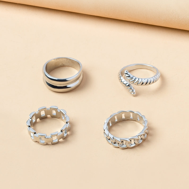 Simple Style Solid Color Alloy Snake Open Rings Set for Women