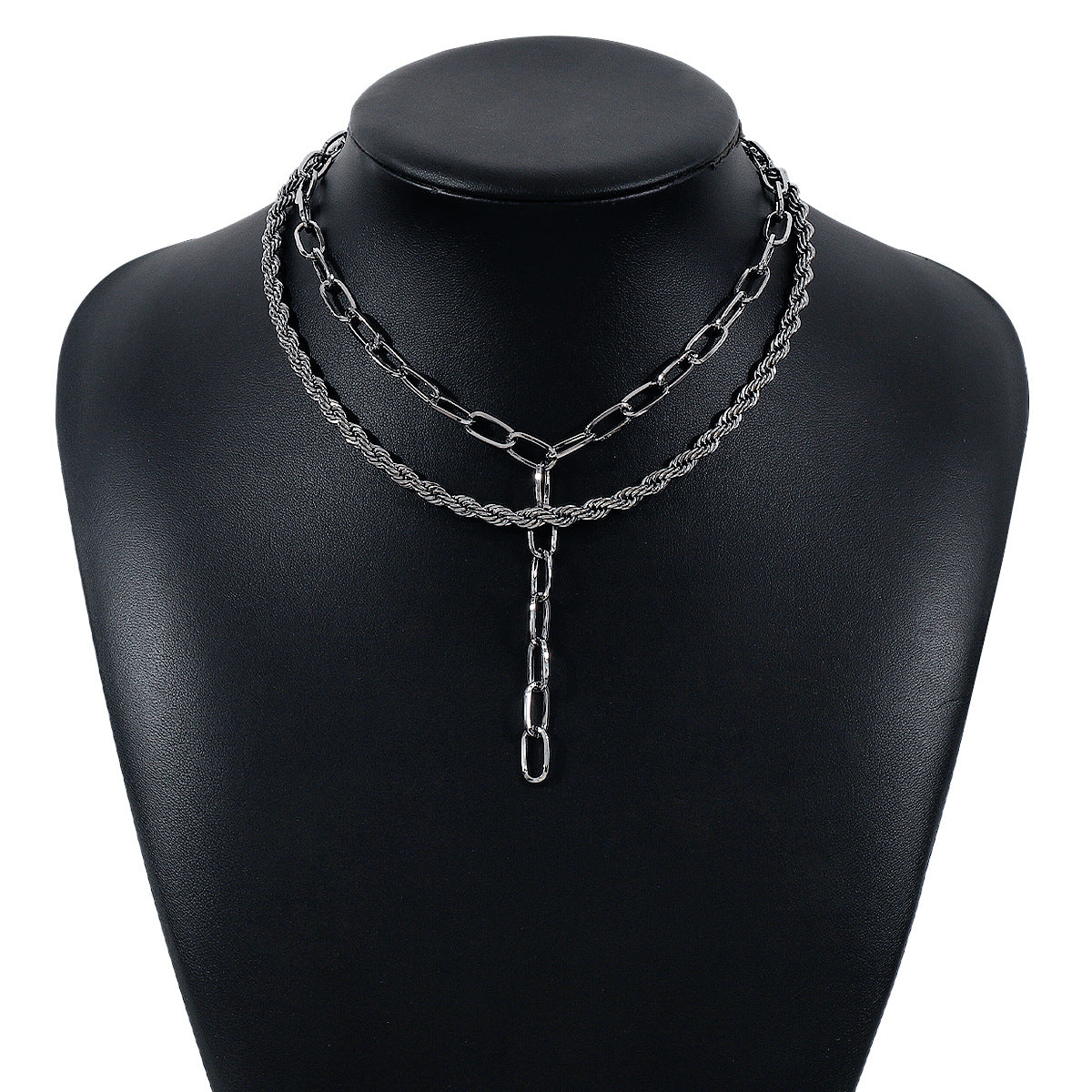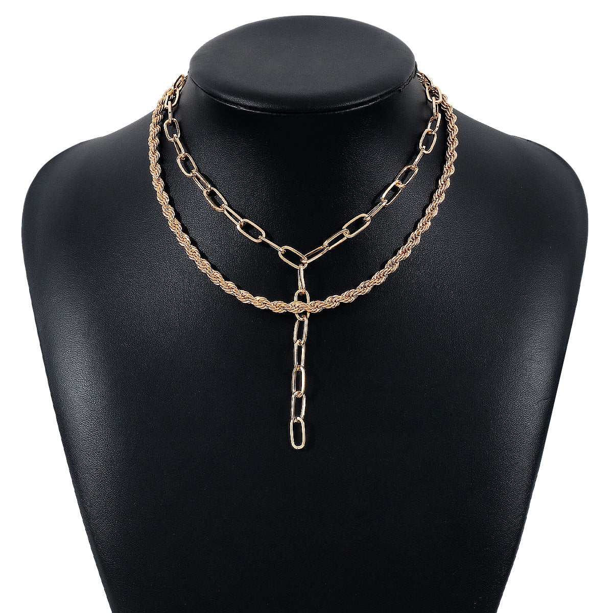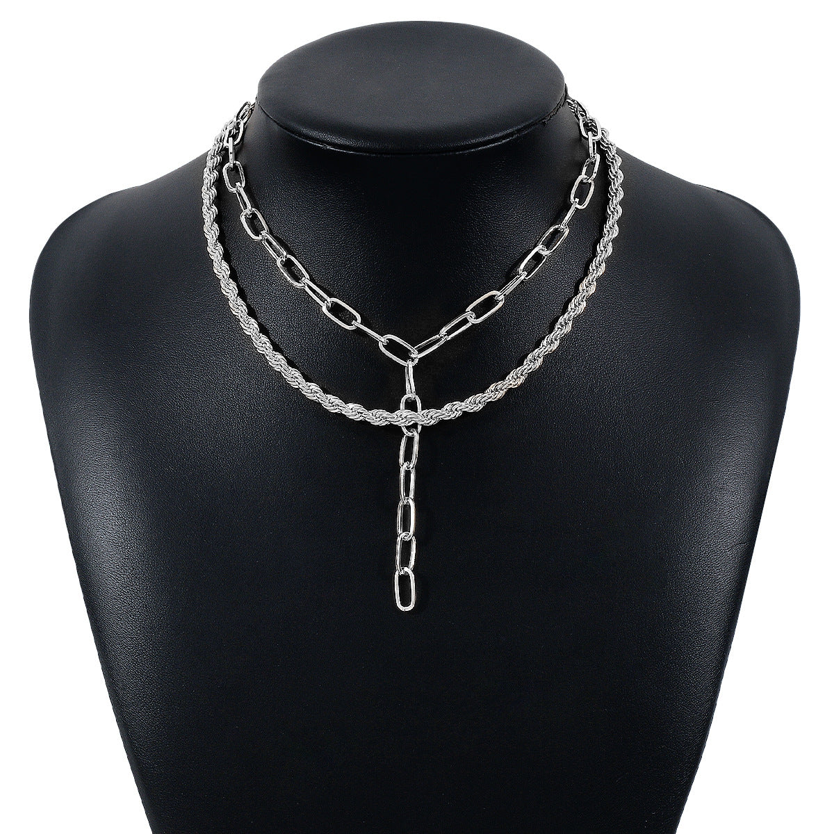 Simple Style Solid Color Alloy Layered Tassel Chain Necklace
