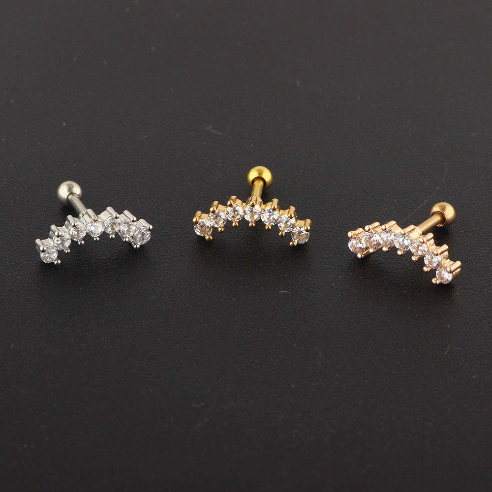 Simple Style Stainless Steel Zircon Inlay Ear Studs and Lip Piercing Jewelry