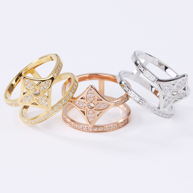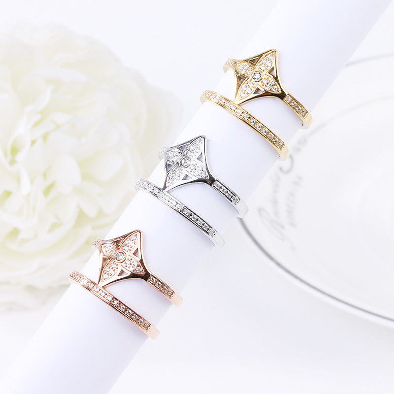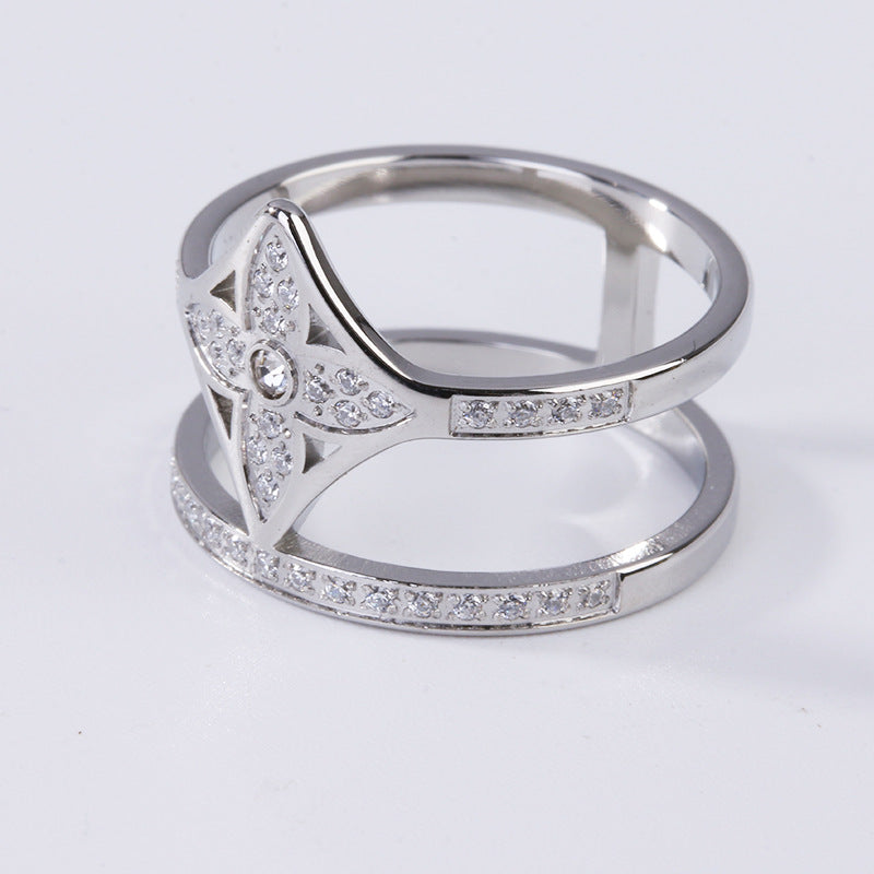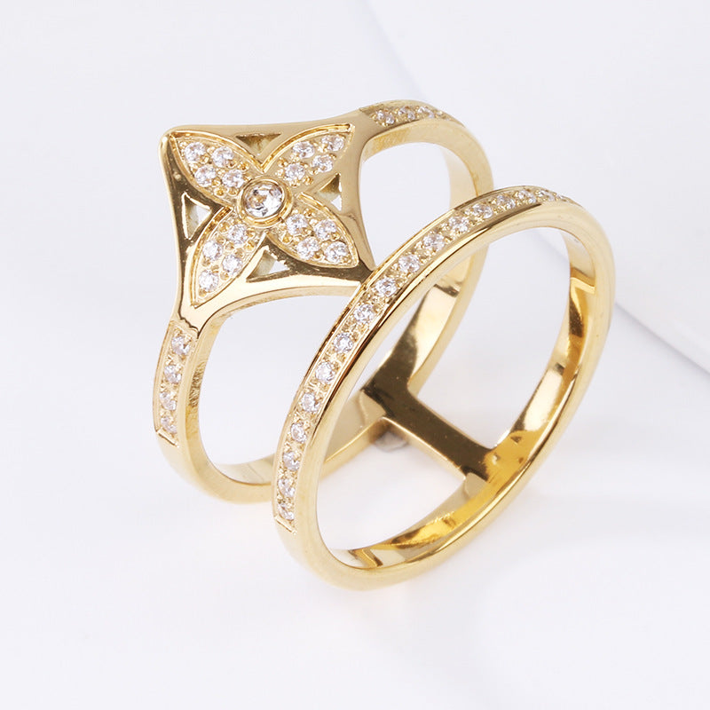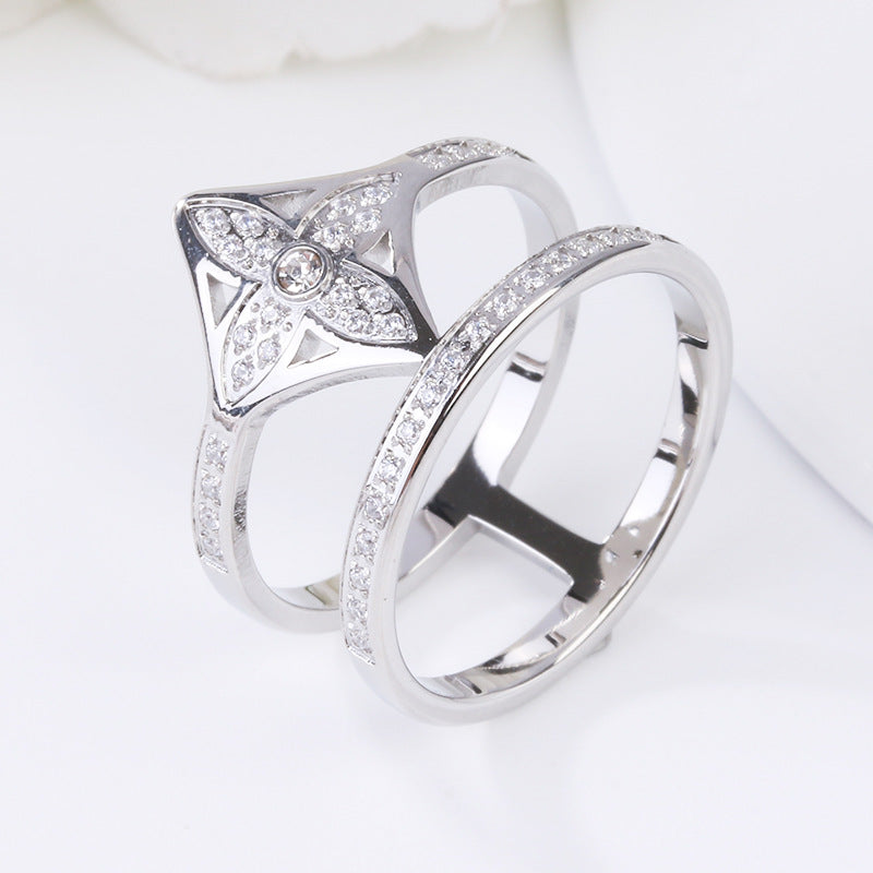 Elegant Titanium Steel Gemstone Open Ring Set for Women