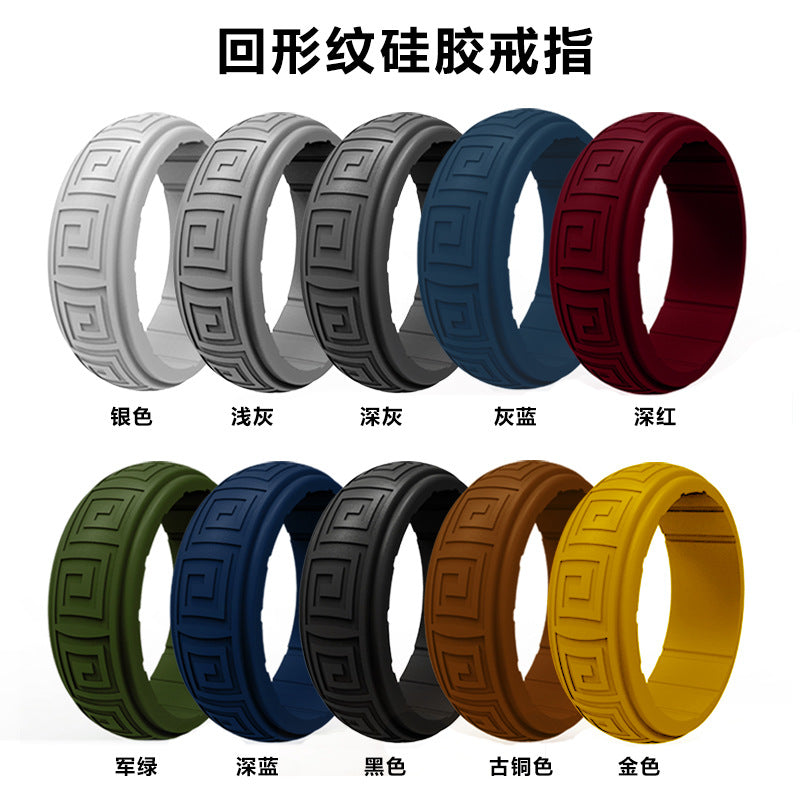 Simple Style Geometric Silicone Men's Rings - Breathable Design, 10 Color Set