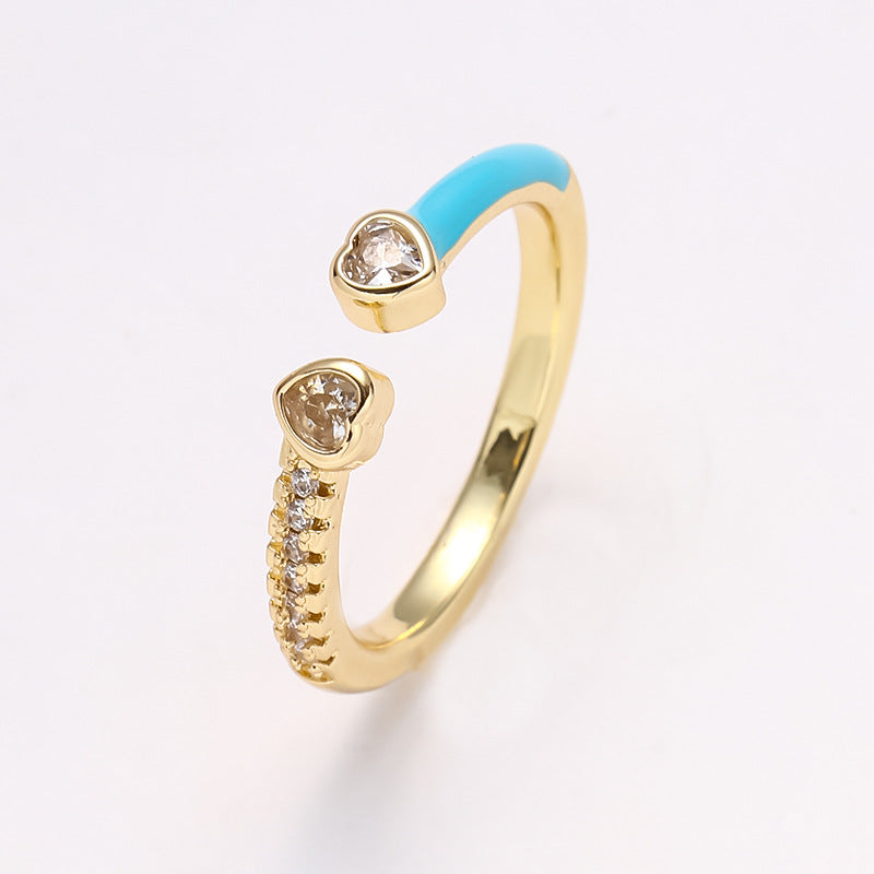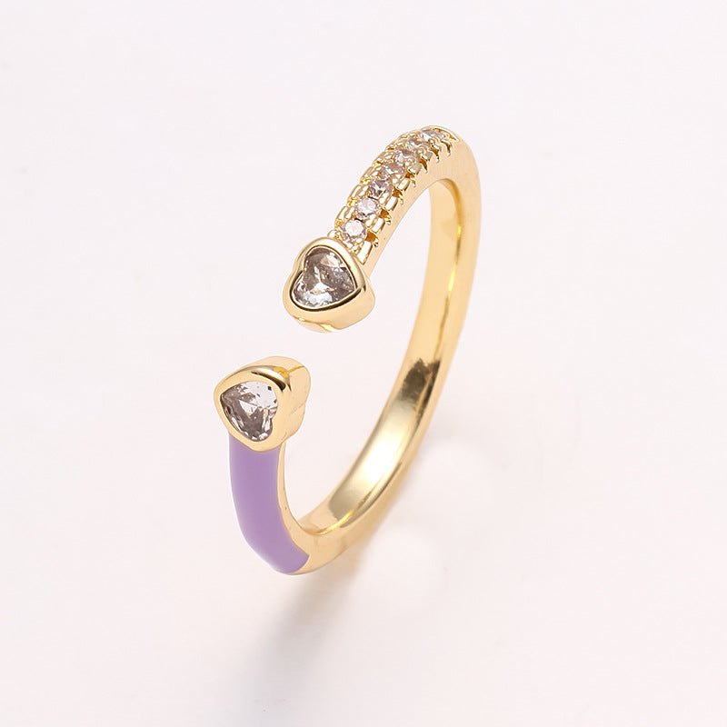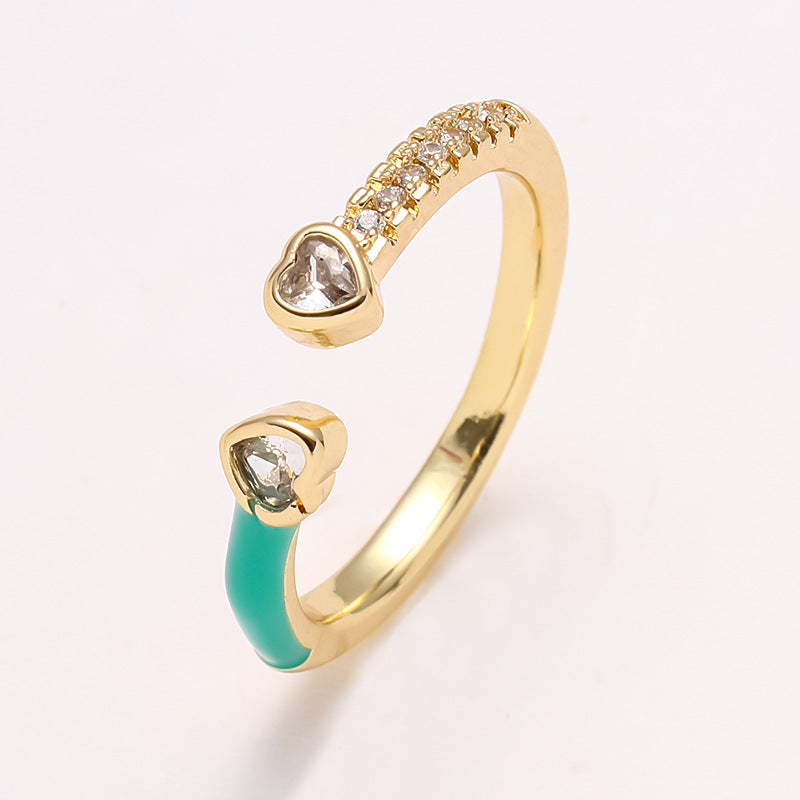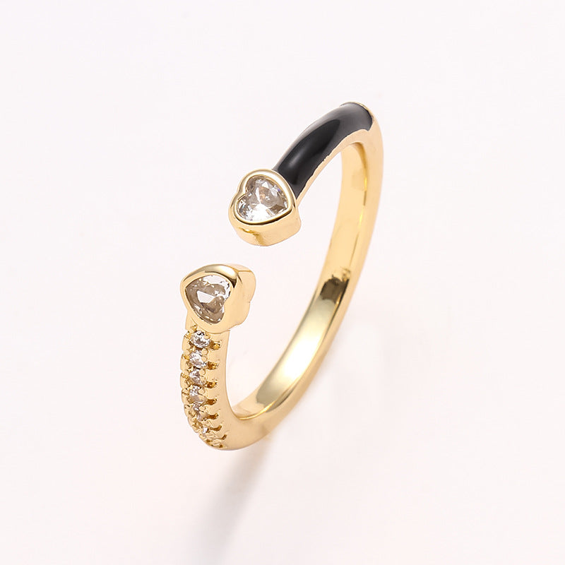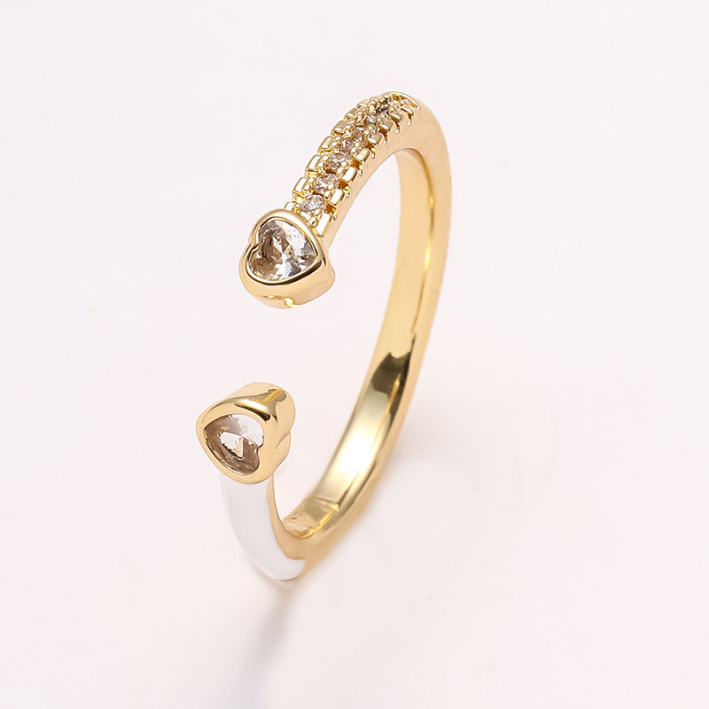 Simple Heart Shape Zircon 18K Gold Plated Open Ring - Minimalist Design Fashion Statement Ring