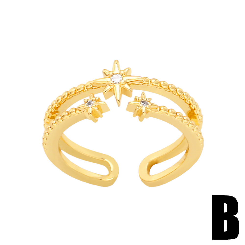 Simple Star and Moon Gold Plated Zircon Open Ring