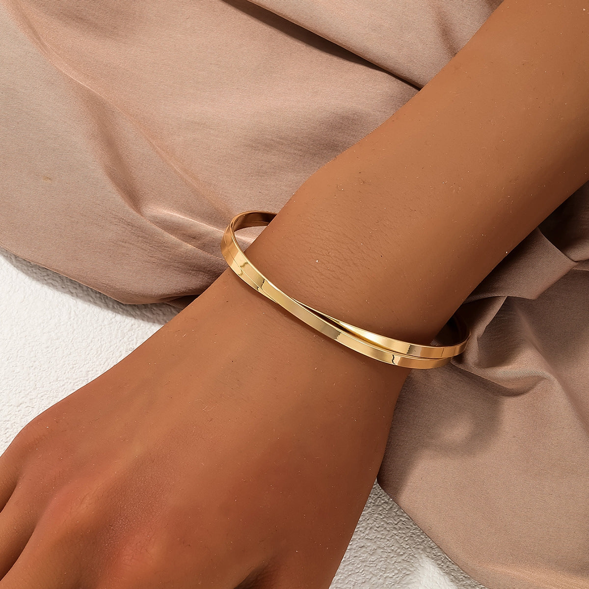 Simple Streetwear Solid Color Alloy Plated Women's Open Cuff Bracelet
