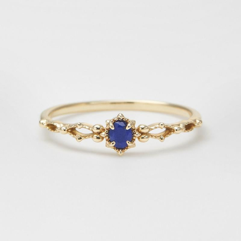 Minimalist U-Shape 18k Gold Plated Ring with Inlaid Moonstone and Lapis Lazuli