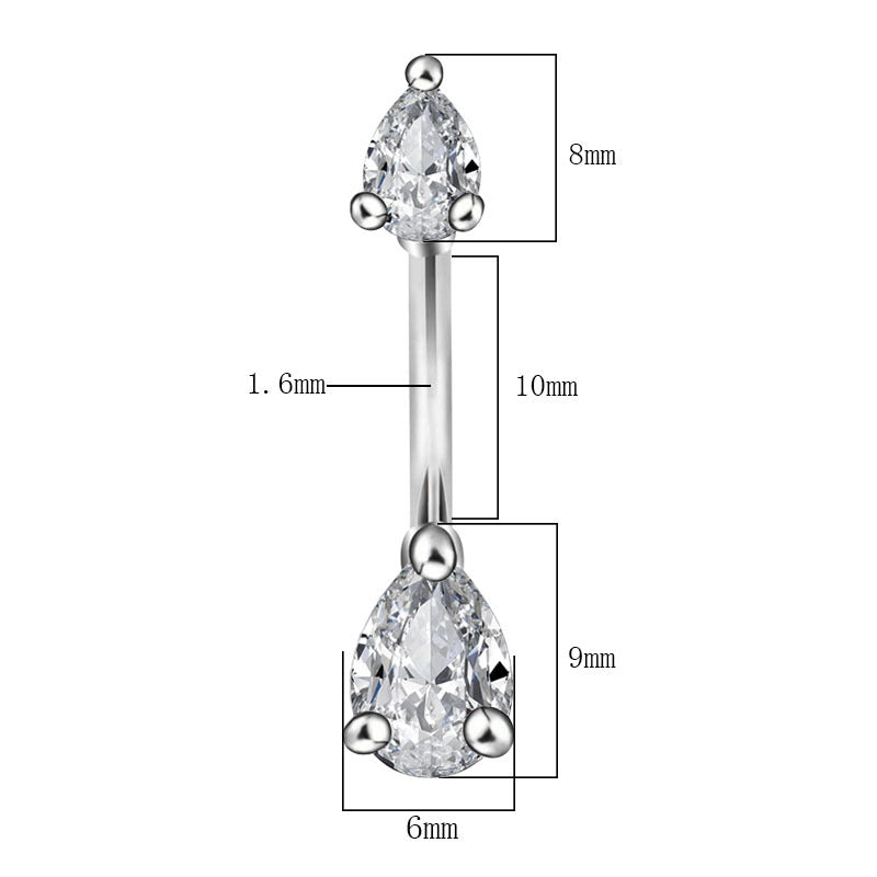 Crystal Water Droplet Flower Butterfly Stainless Steel Zircon Belly Ring in Rose Gold