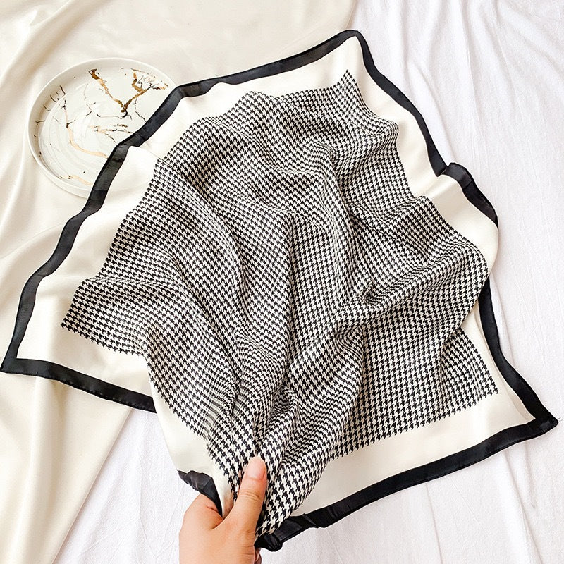 Silk Houndstooth Square Scarf for Women - Professional & Fashionable Sun Protection Accessory
