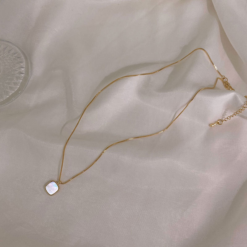 Square Shell White Fashion Pendant Minimalist Design Alloy Clavicle Necklace