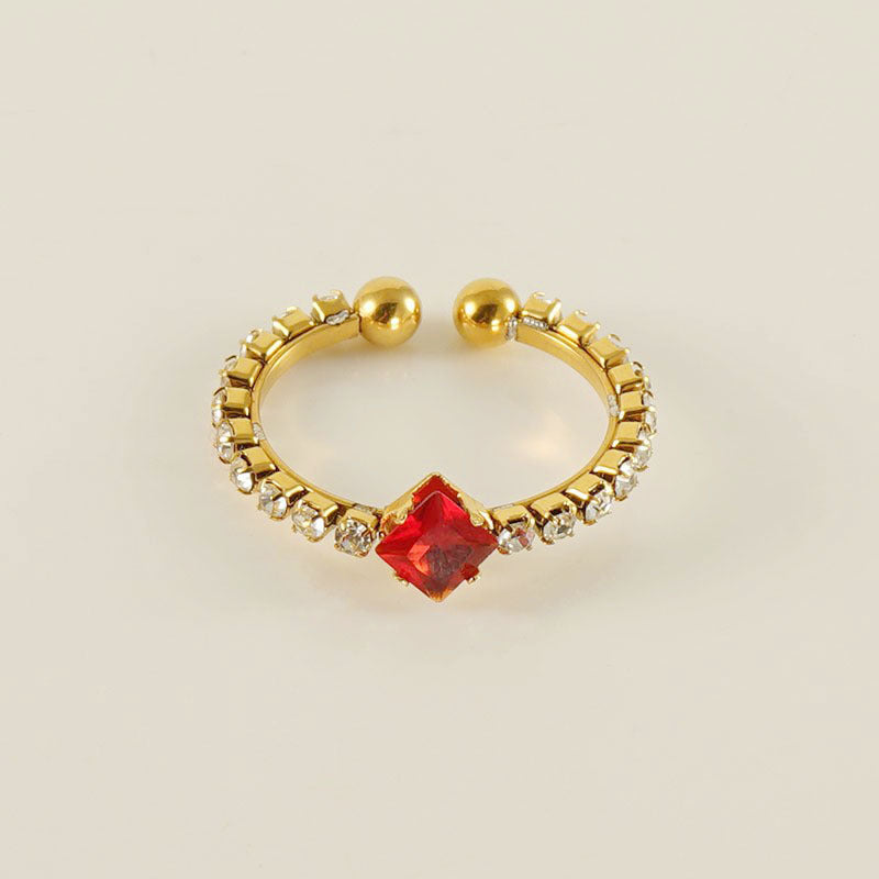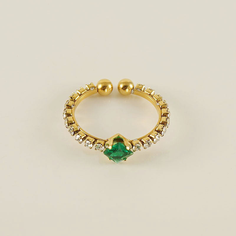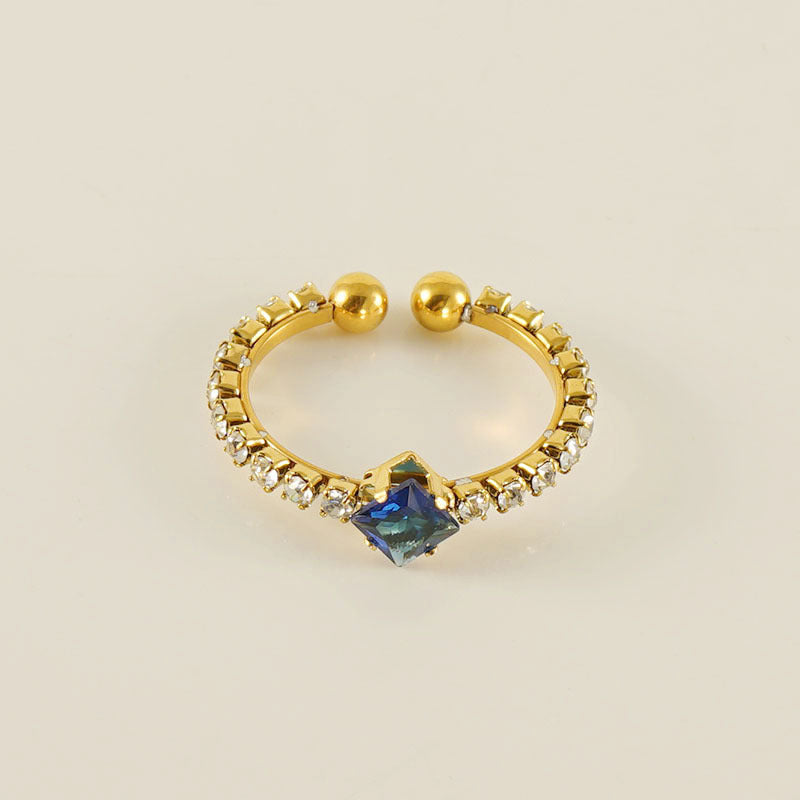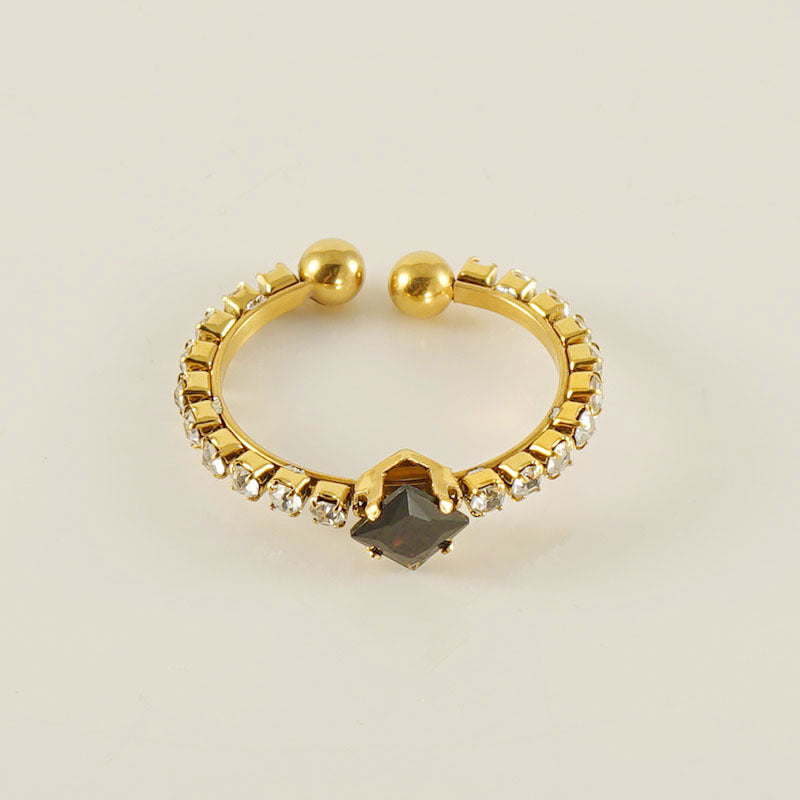 Square Stainless Steel 18k Gold Plated Zircon Adjustable Vintage Ring for Women