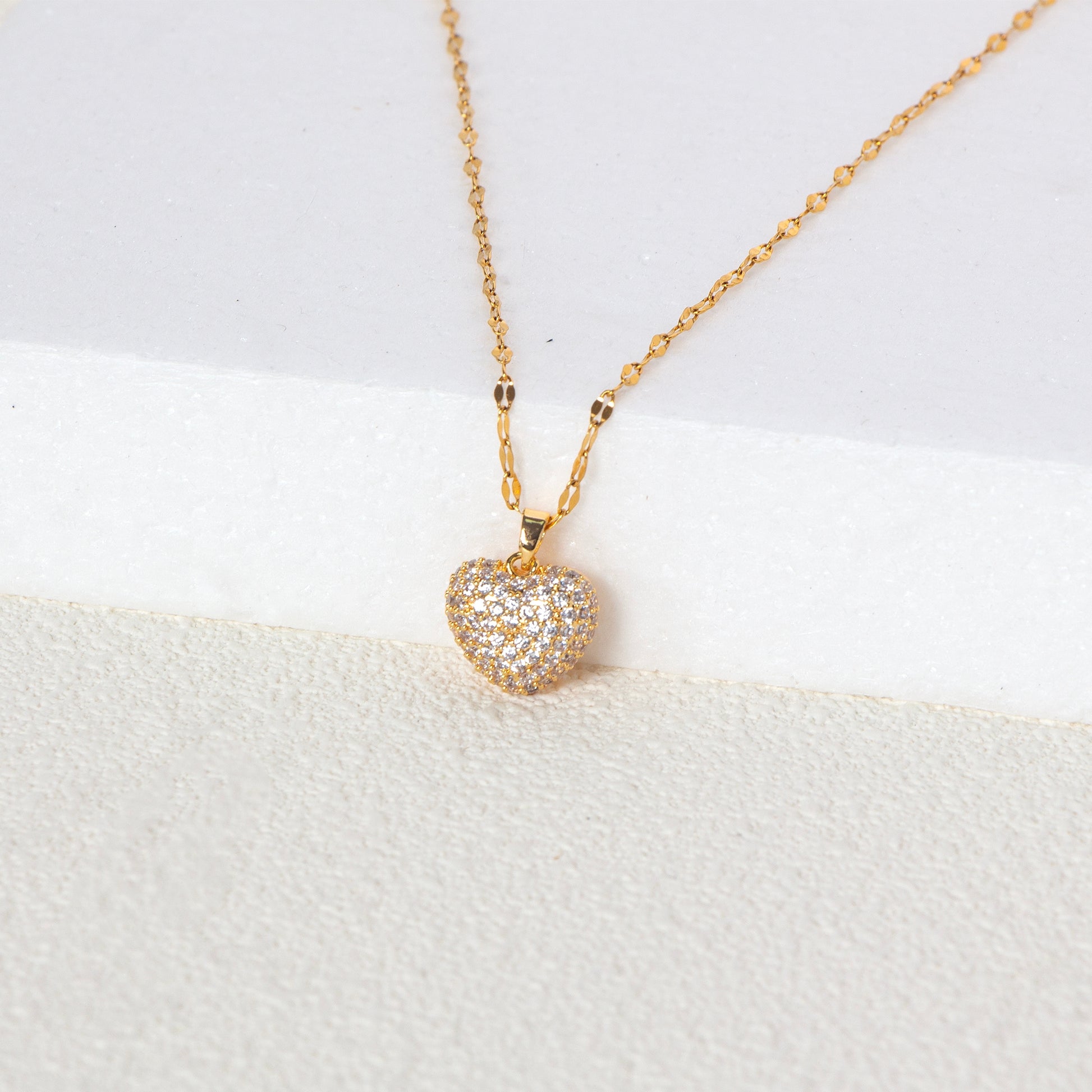 18K Gold Plated Heart Shape Zircon Pendant Necklace