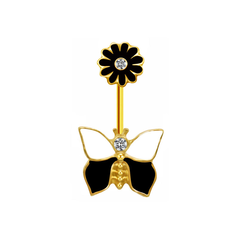 Star Bat Heart Belly Button Ring - Stainless Steel & Copper with Rhinestones and Zircon, Gold Plated Navel Piercing Jewelry