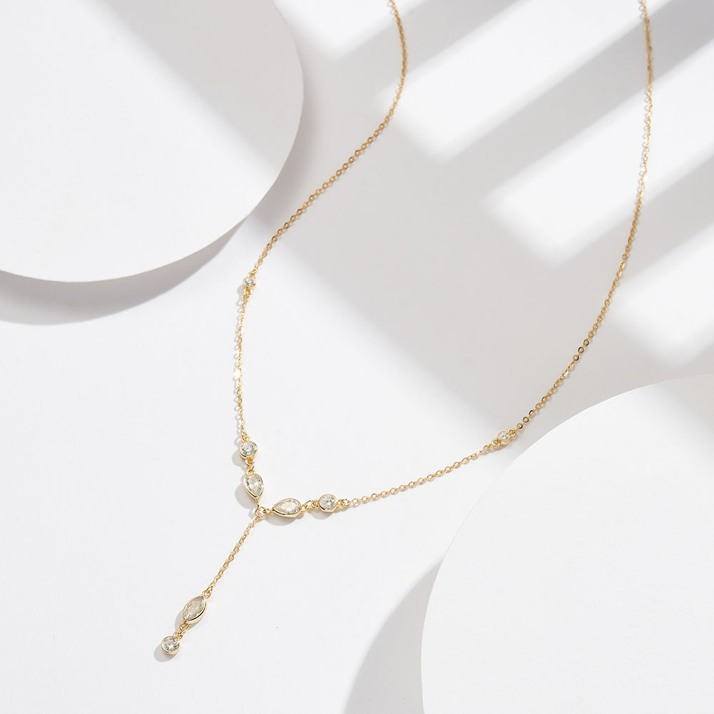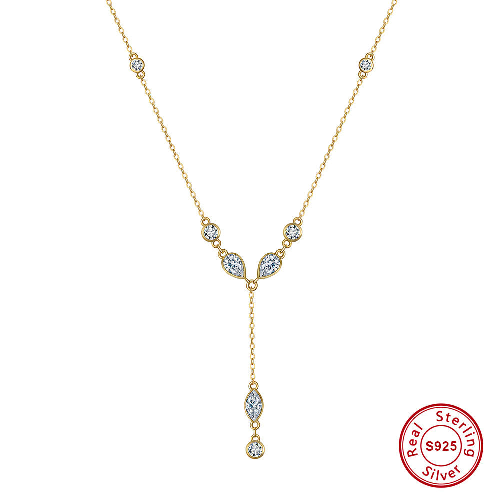 14K Gold Plated Sterling Silver Zircon Lariat Necklace