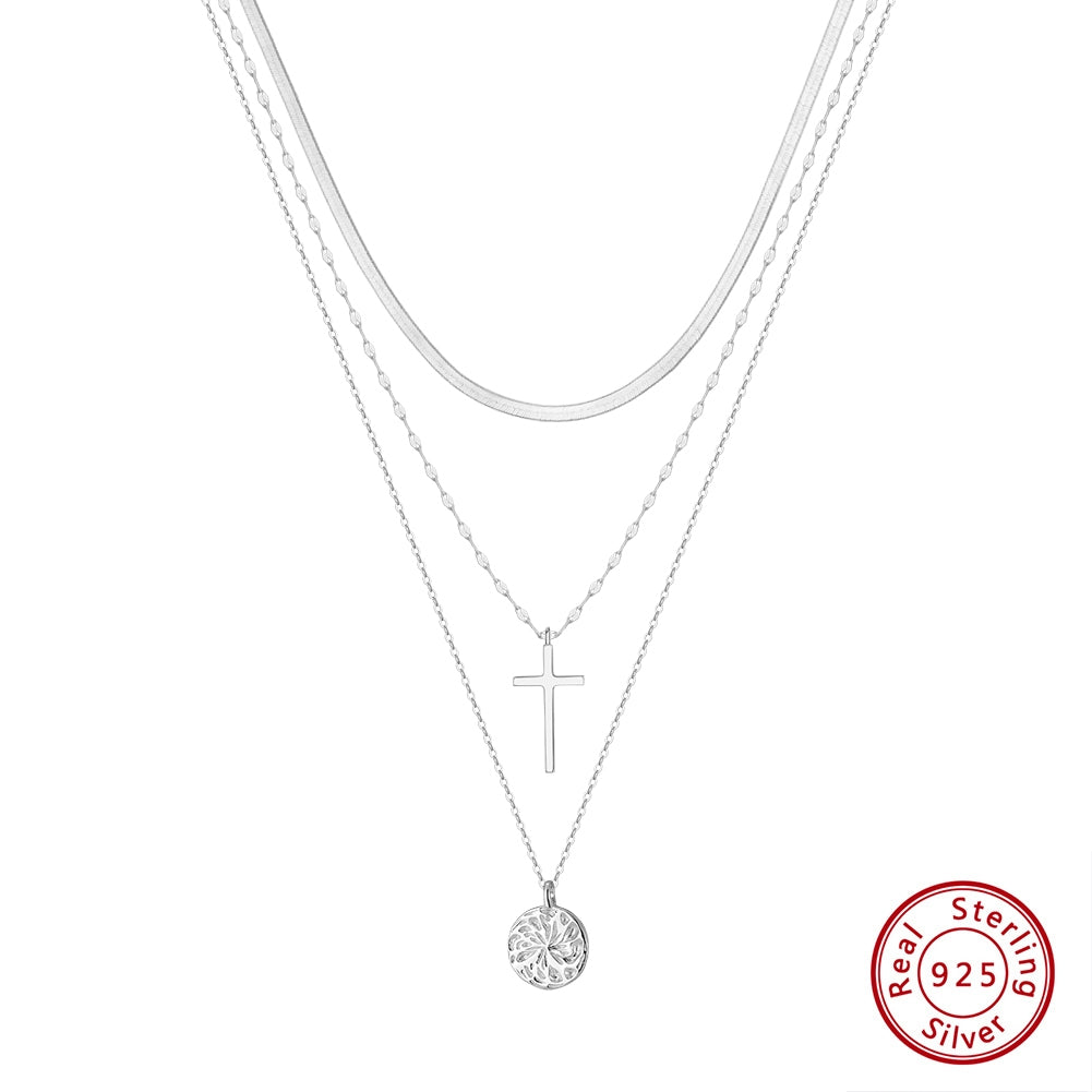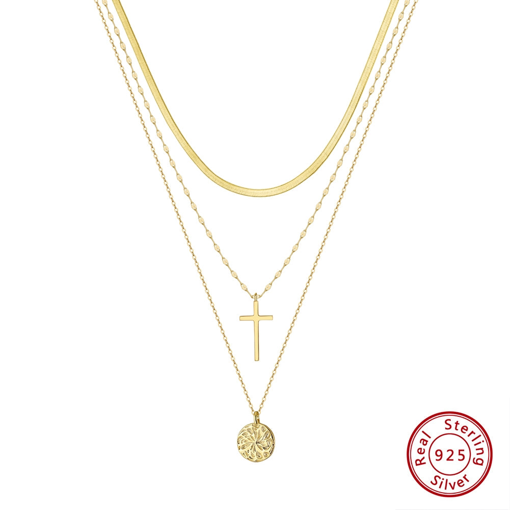 Sterling Silver 14K Gold Plated Triple Layer Cross Pendant Necklace