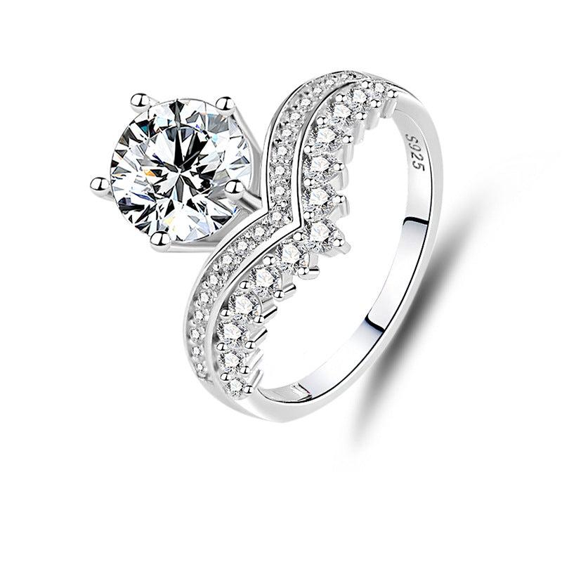 Sterling Silver Crown Design Moissanite Ring with Rhinestones, 2 Carat D Color Princess Cut