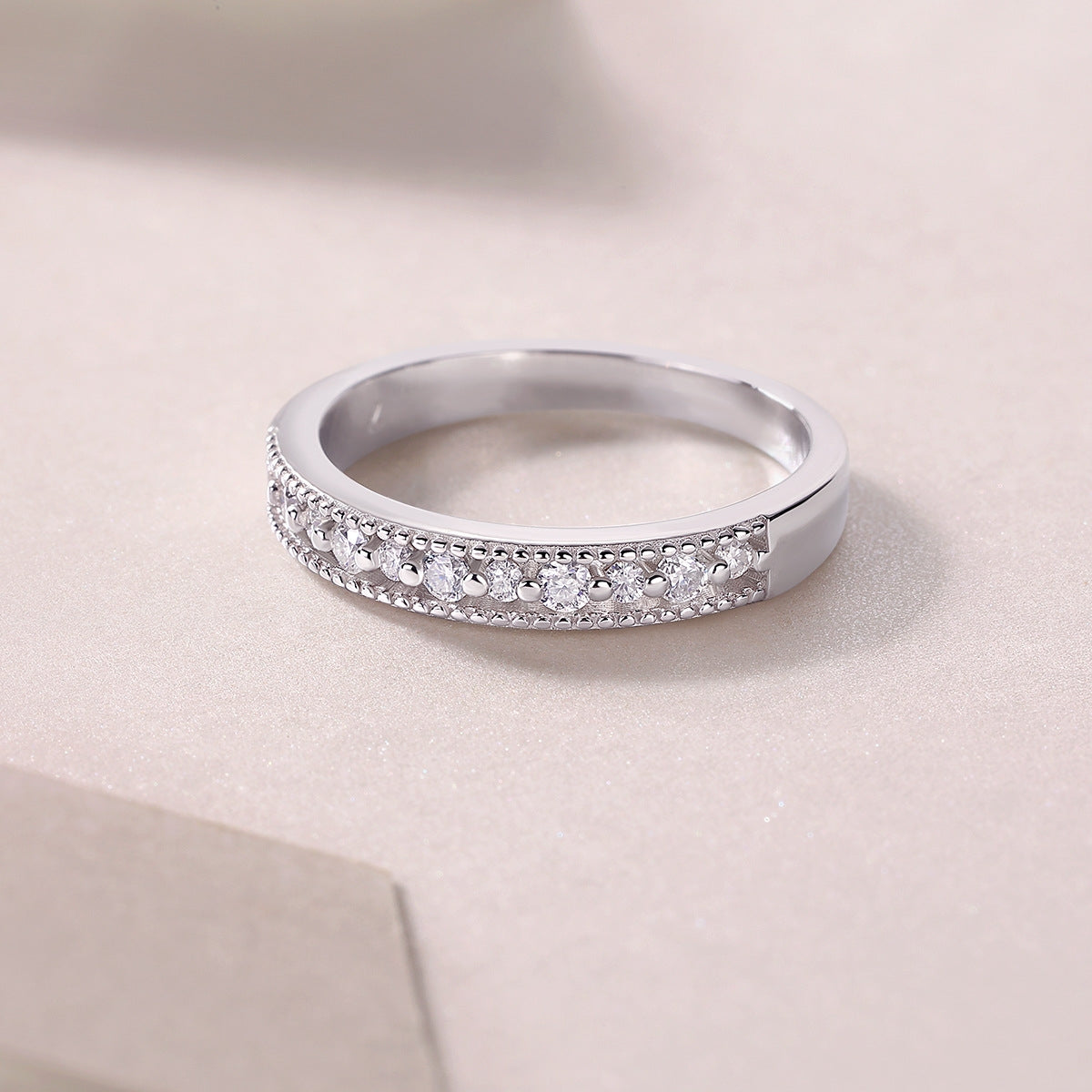 Sterling Silver Moissanite Inlay Ring - S925 Adjustable Band
