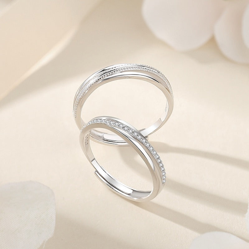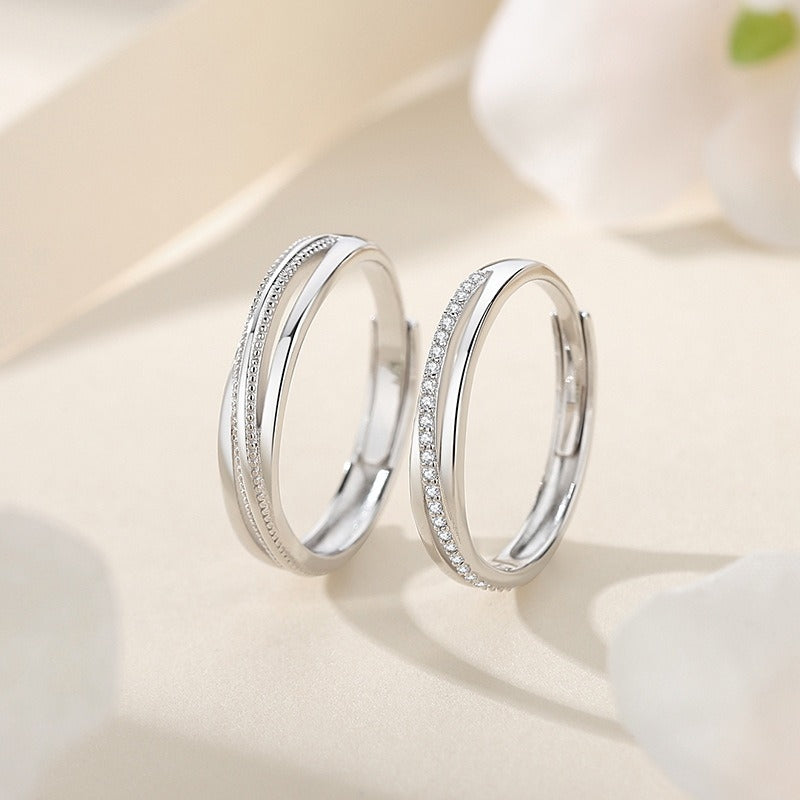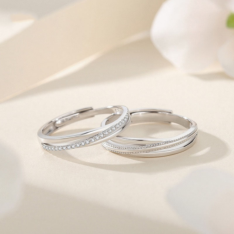 Sterling Silver Mobius Couple Rings Adjustable Set
