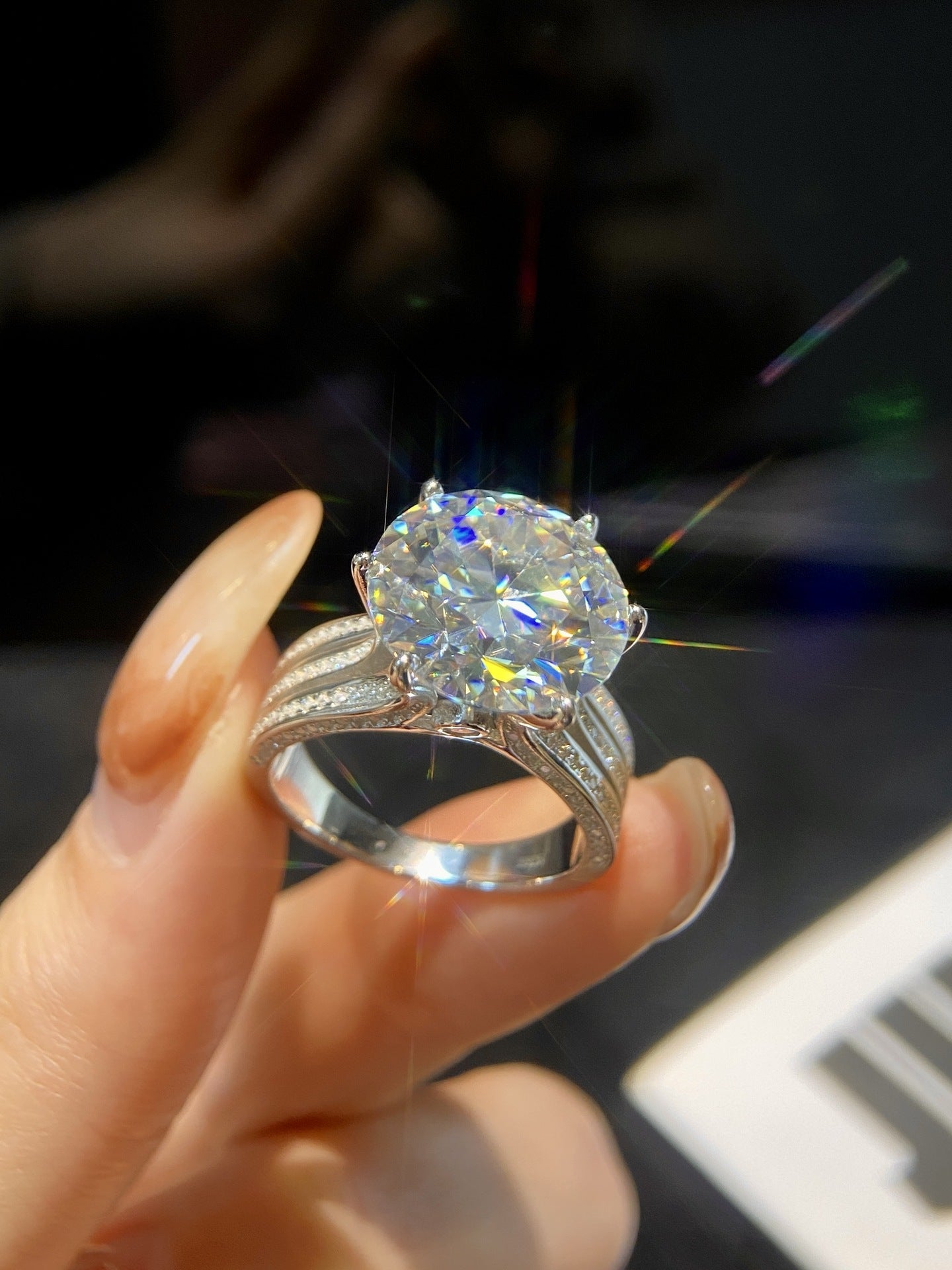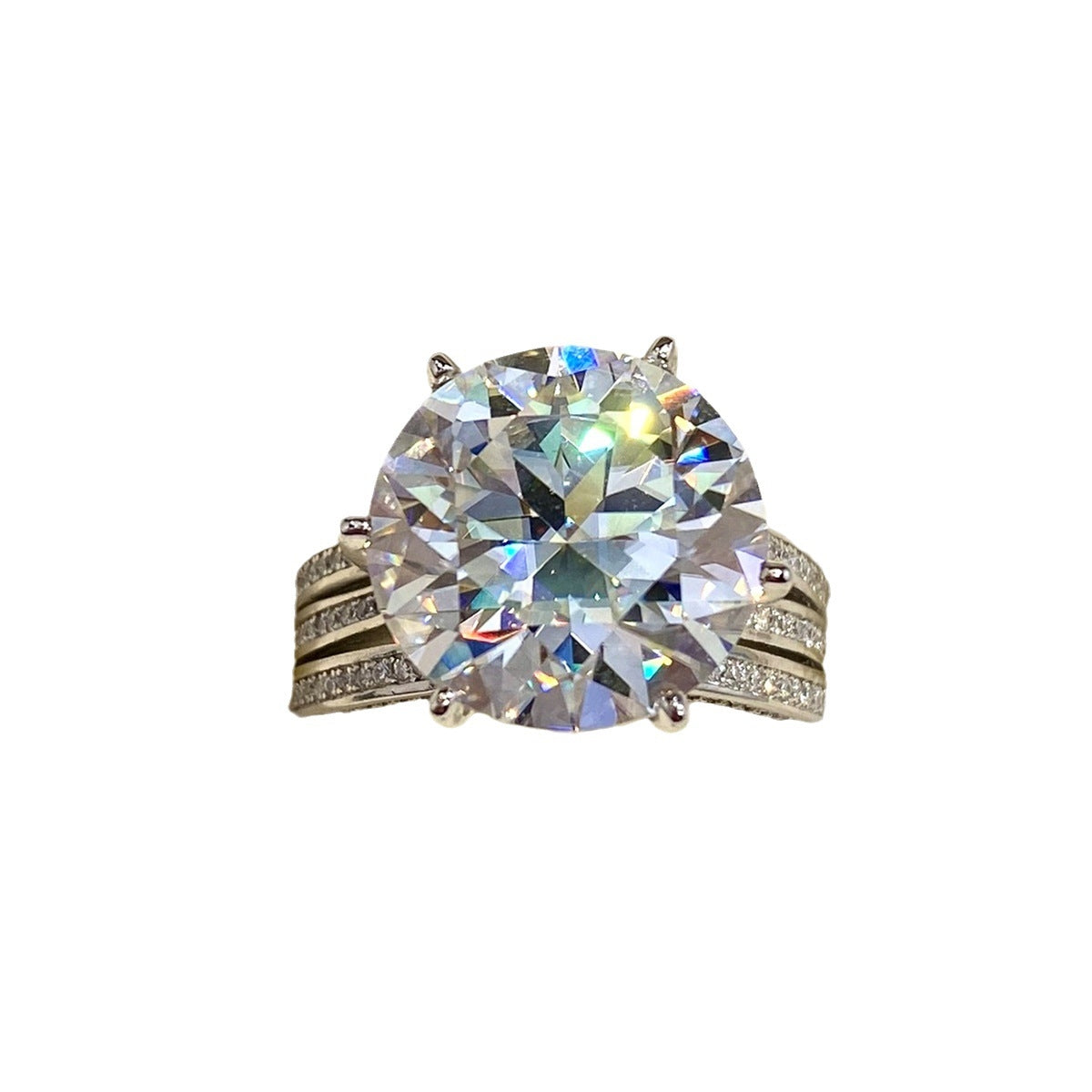 Sterling Silver Inlay Moissanite Four-Prong Ring