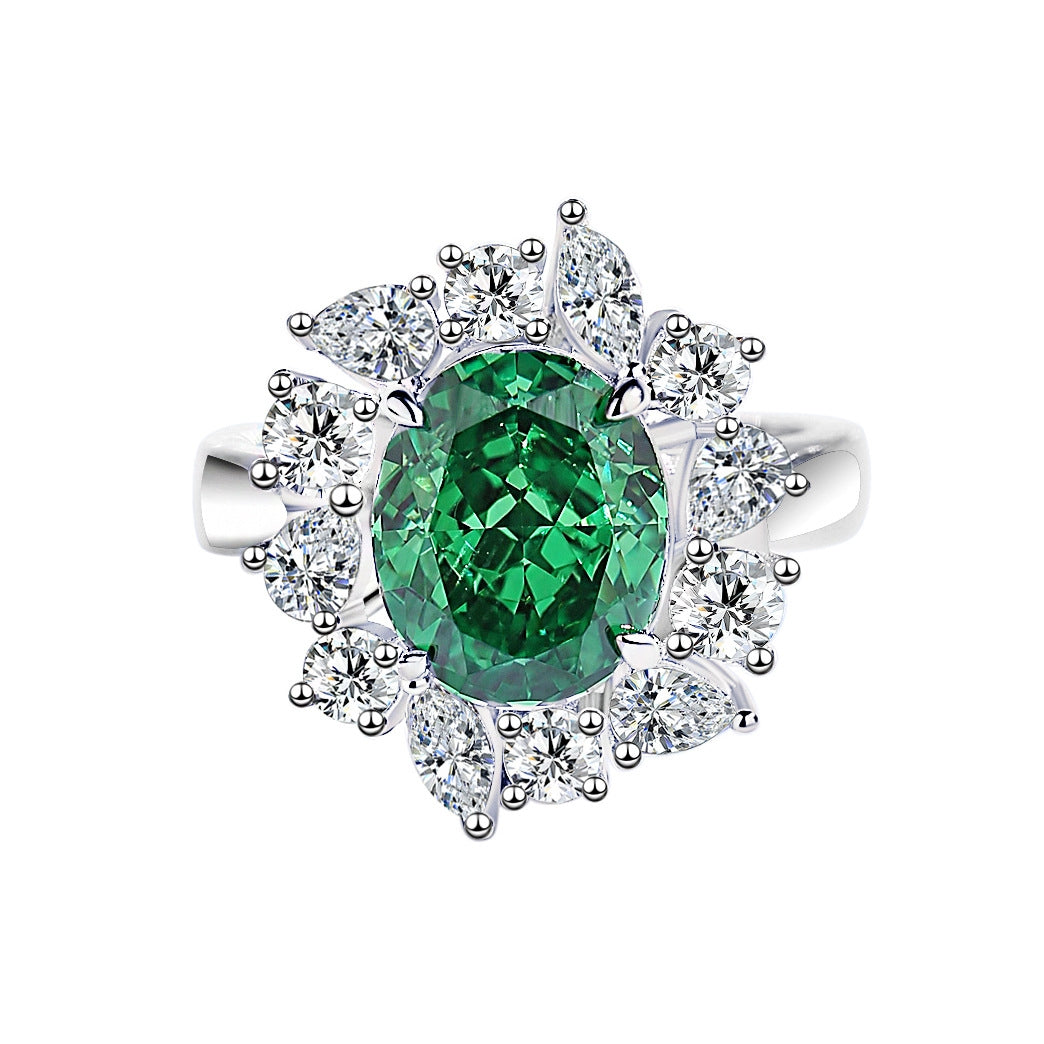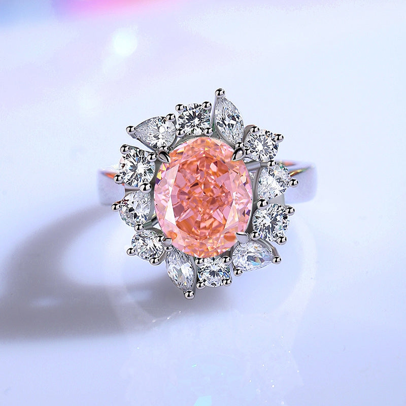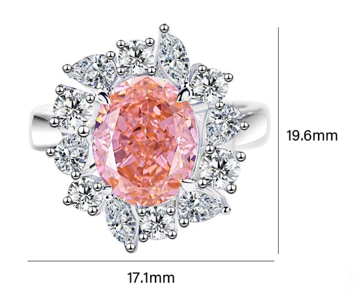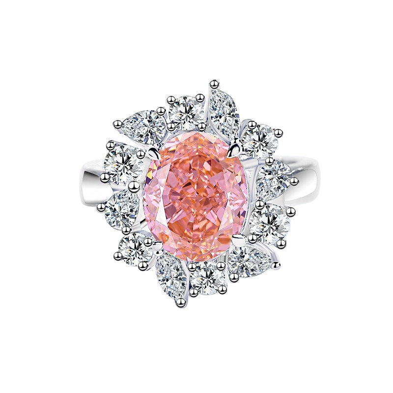Sterling Silver Geometric Inlay Pink Diamond Ring 4 Carat S925 Jewelry