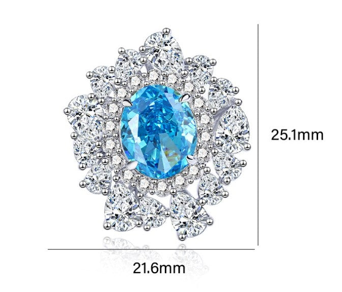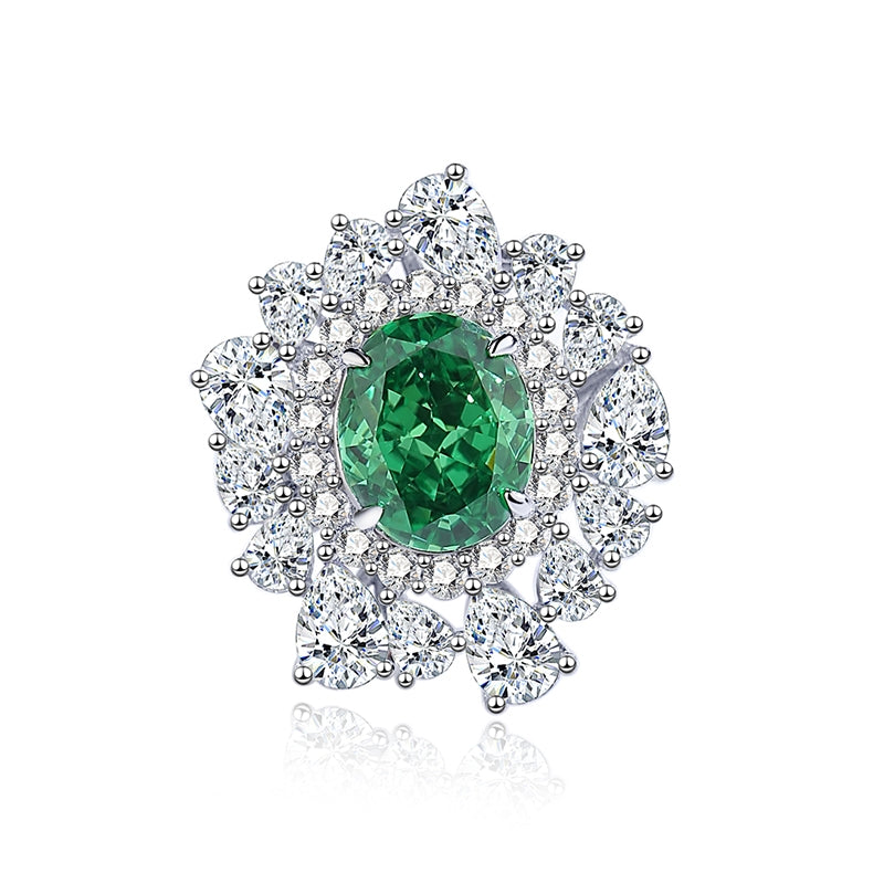 Emerald Oval Cut Zirconia Sterling Silver Geometric Inlay Ring
