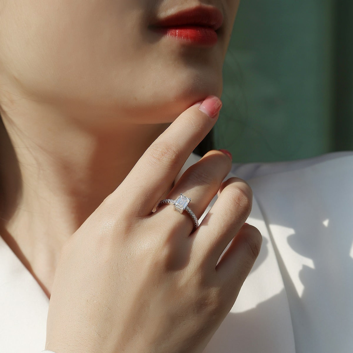 Sterling Silver White Gold Plated Moissanite Rectangle Ring