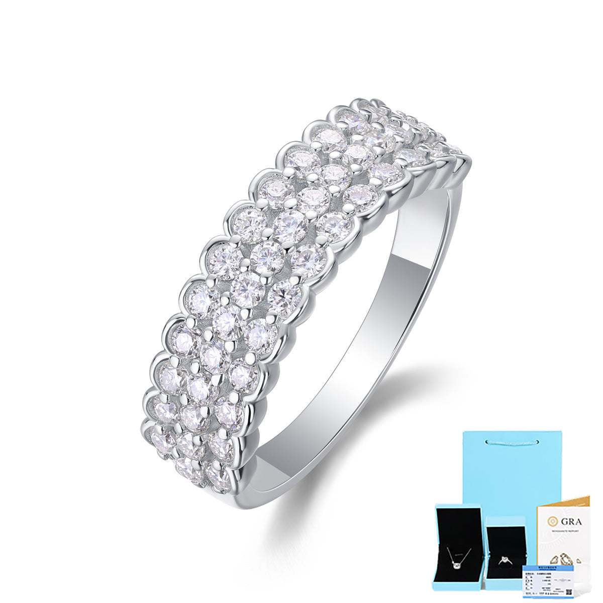 Sterling Silver White Gold Plated Moissanite Inlay Ring