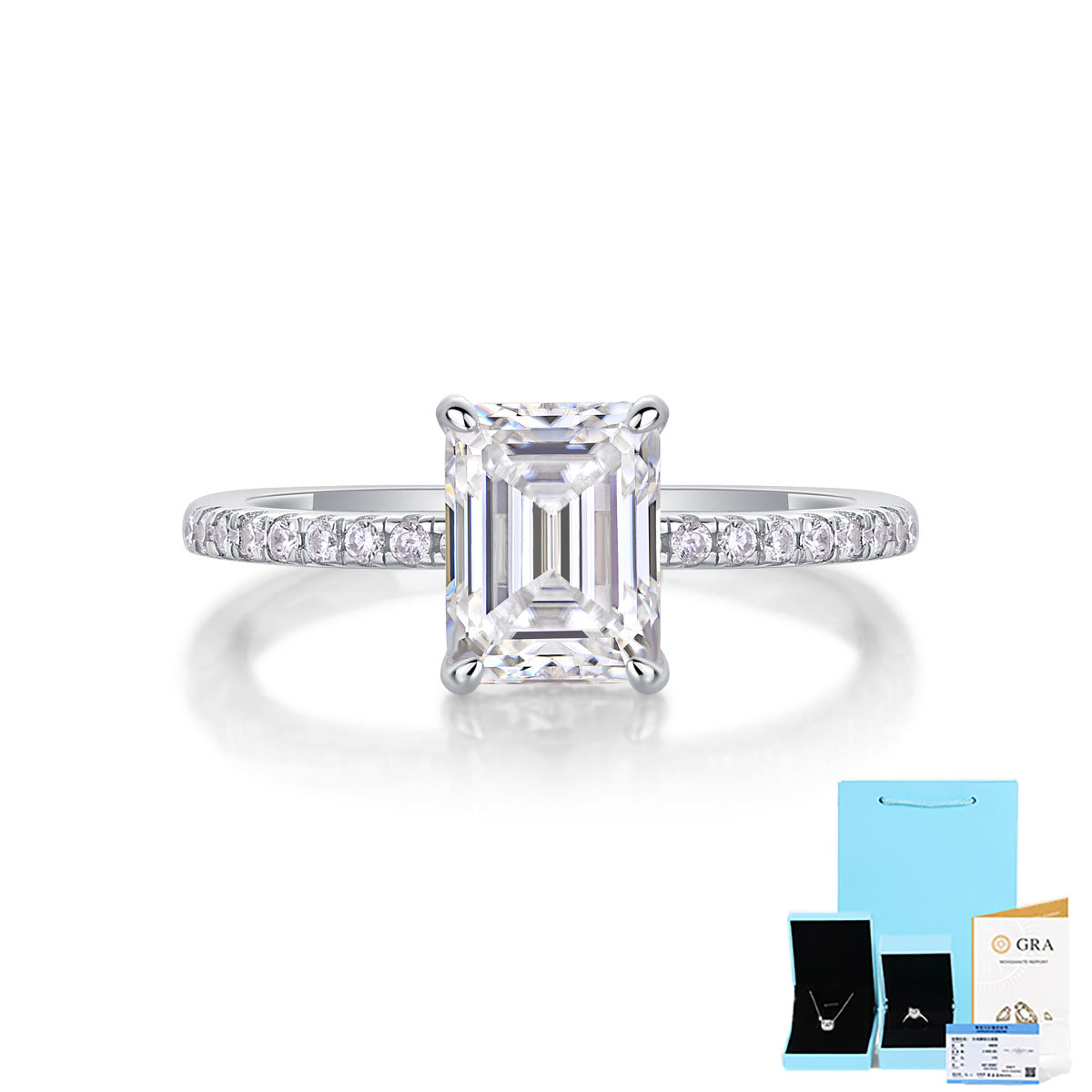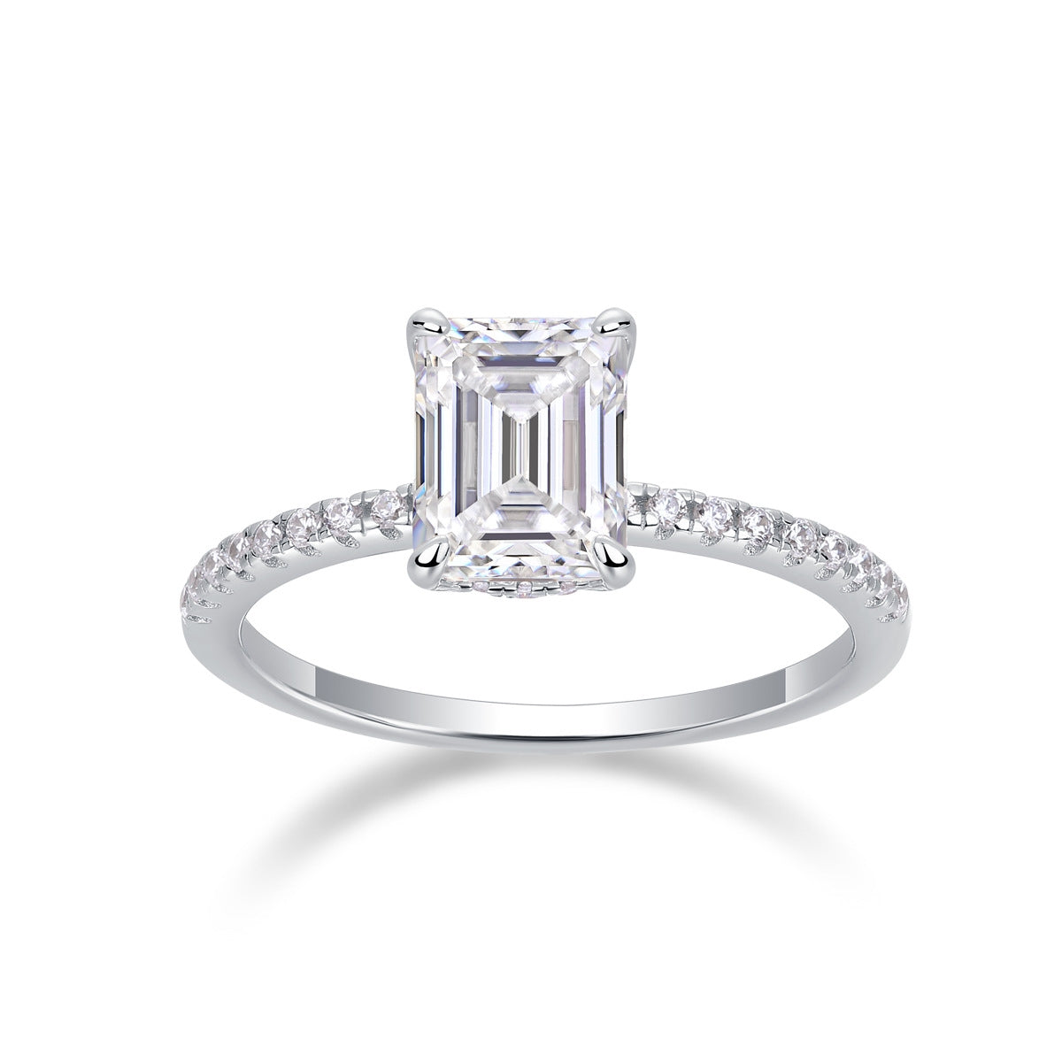 Sterling Silver White Gold Plated Moissanite Inlay Rectangle Ring